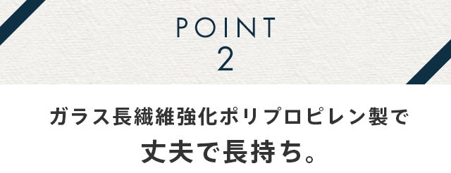 GFRPはグラスファイバー(ガラス繊維)とポリプロピレンの複合素材で、プラスチックの強度をグラスファイバーが補完するので大変丈夫。