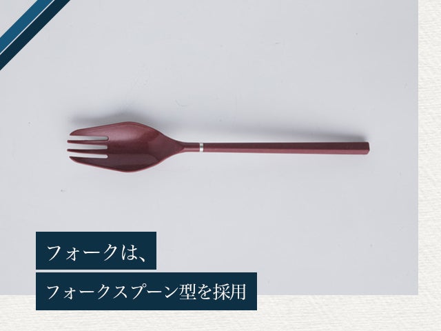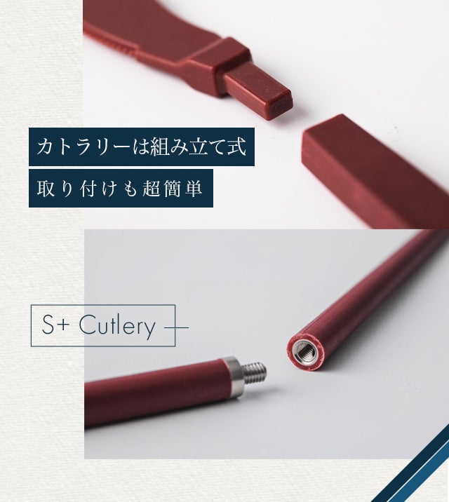 携帯型のカトラリーで使う素材の長所を併せ持つ【S+ Cutlery】なら、あなたの外出先のお食事で不便を感じることは、もうありません。