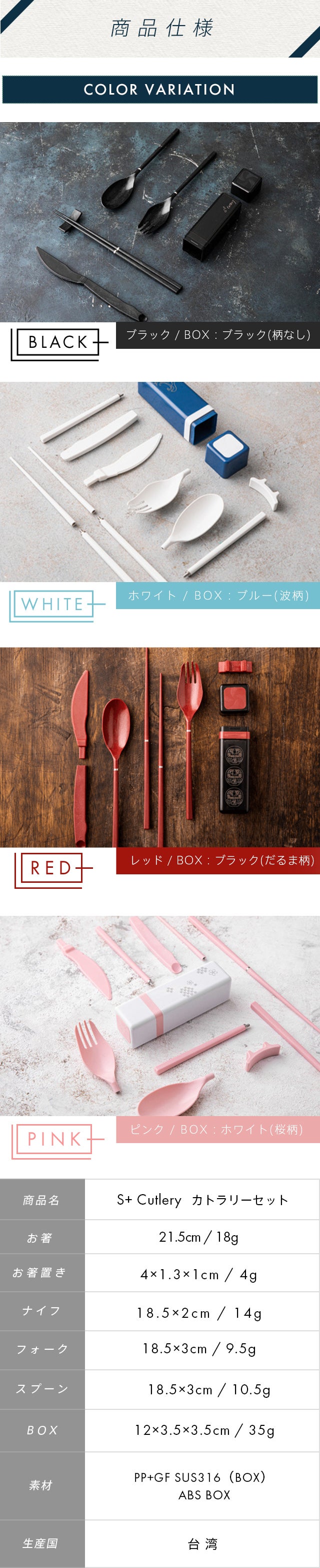 この度は「S+ Cutlery カトラリーセット日本限定モデル」をご覧いただきまして誠にありがとうございます。私たちはその時代に必要な商品、役立つ商品、求められている商品とは何かを日々追求しています。