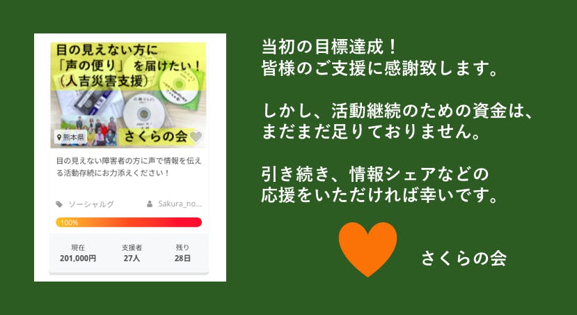 皆様の温かいご支援のおかげで、昨日(8月17日)に当初の目標額を達成できました。