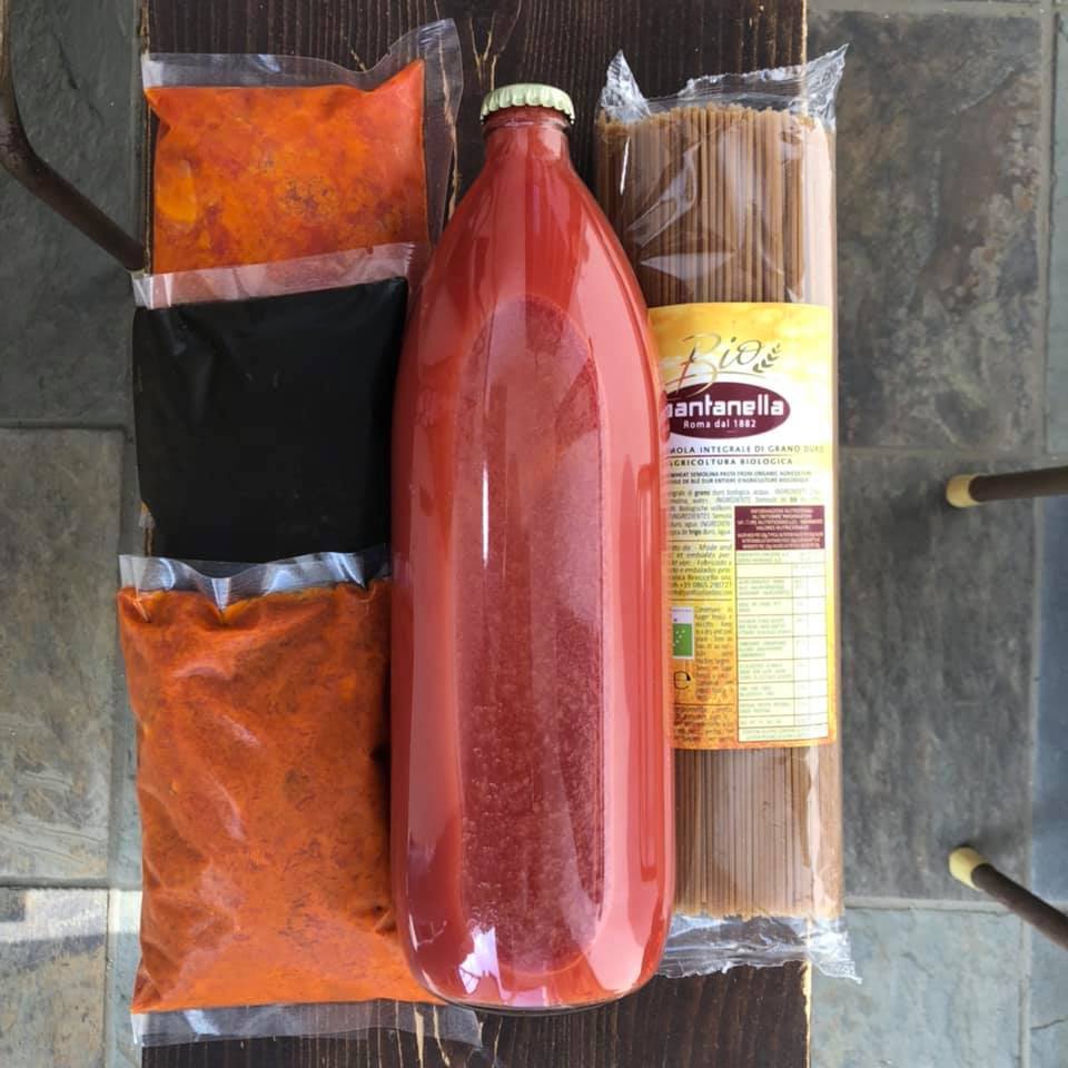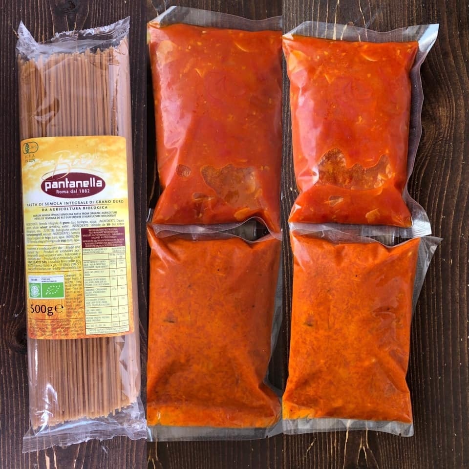 12,000円 パスタソース(アマトリチャーナ 美瑛産ミディトマトのソース 各1袋2人前入り 計4人前)