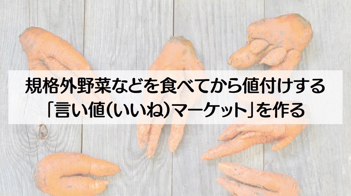 規格外野菜など、市場から弾かれてしまって捨てるしかない商品を、消費者に無料で送り、消費者が食べた後にその食材に値段をつけるというサービスです。生産者の思いやこだわりなどの情報を合わせて送ることで、規格外野菜などが通常価格と変わらない値段で売れるような世界を実現したいと考えています。