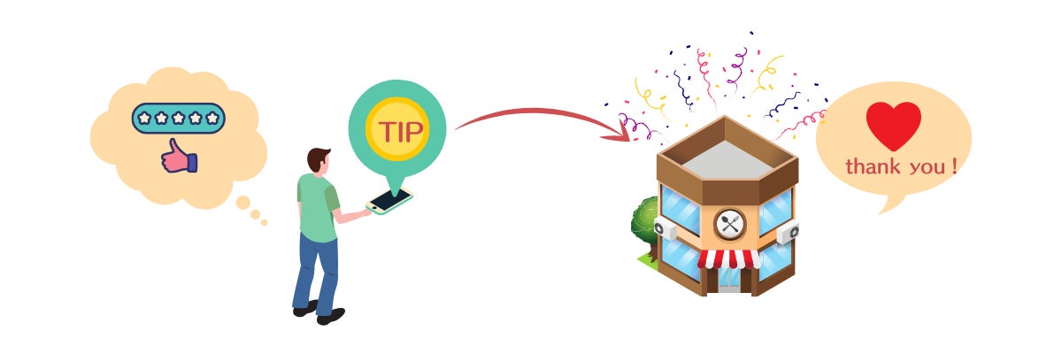 飲食店に対しての応援を「チップ」というカタチにすることができます。この応援チップは見返りを求めるものではなく、飲食店に対する支援です。飲食店は、応援チップの使い道は自由ですが、月に一度、なにに利用したかをファンクラブに対して報告します。(例:従業員のお給料UP、店舗維持費、クーポンなど)飲食店を応援できる新しい方法になります。ちなみにTIPPERとは“チップを送る人”という意味でこちらからきています。