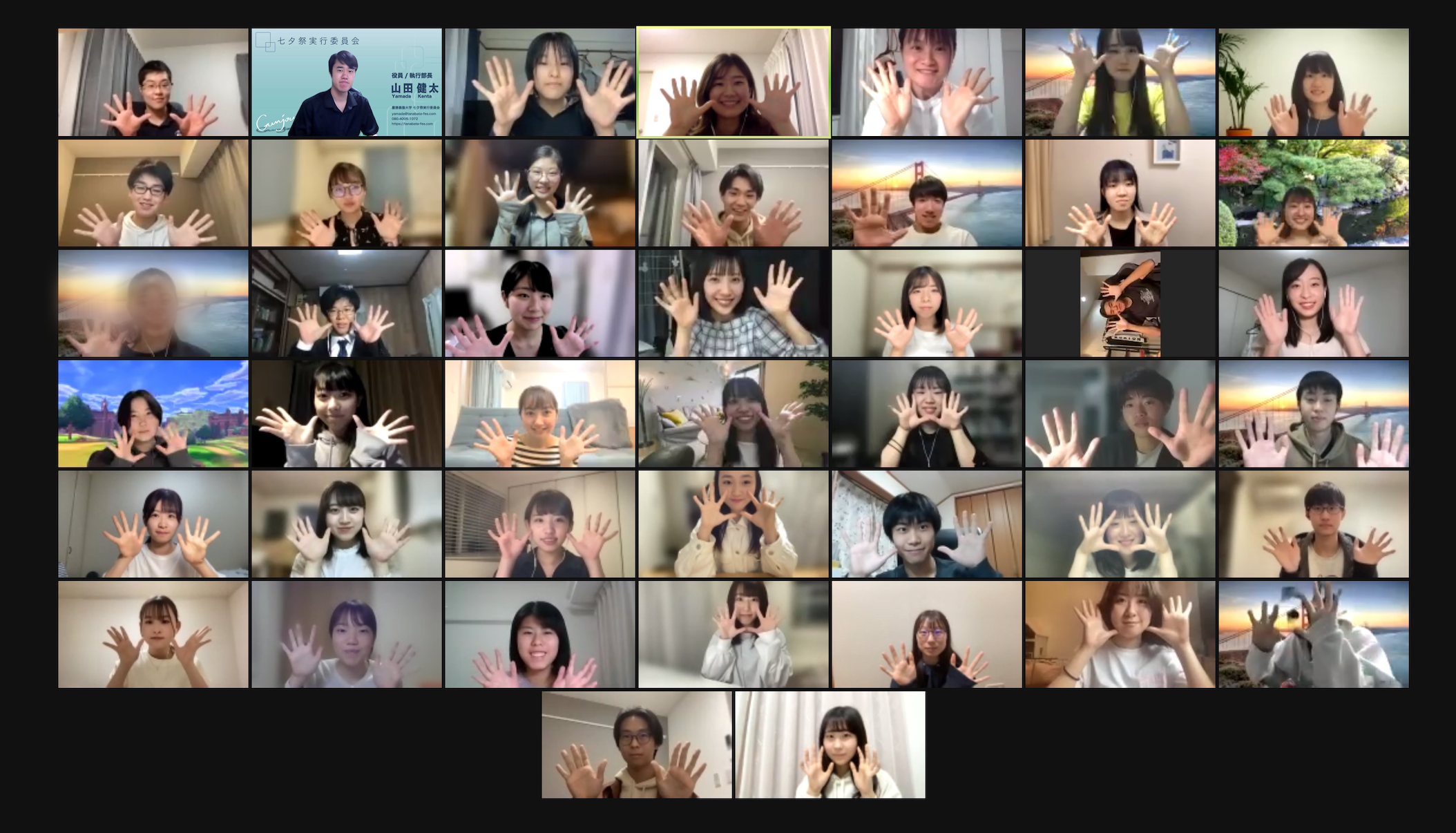 バーチャル空間に集って遊べるバーチャルSNS「cluster」とTwitterのライブ配信を行い、Zoomで初めて出会う一年生の委員と共に、準備から運営まで一度も対面せずに全てオンラインで行なっています。