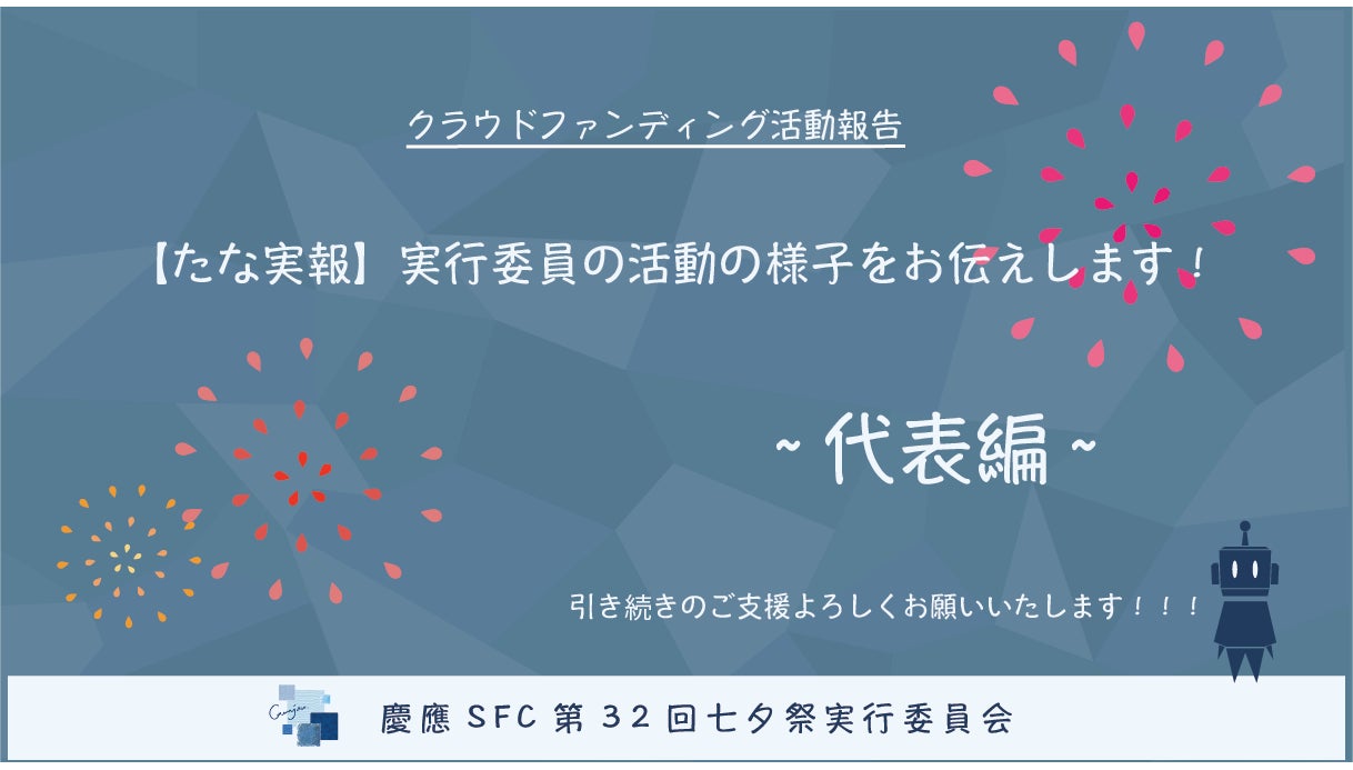 2021/07/02 14:00こんばんは!七夕祭実行委員会です。いつも応援ありがとうございます。活動報告として、実行委員の活動の様子をリレー形式でお伝えします !最終回である第11回目は、七夕祭が恋人、代表からです。- - - - - - - - - - - - - - - - -こんにちは、七夕祭実行委員会代表の七条祐香です。いよいよ活動報告最終日、そして七夕祭まであと1日となりました!!クラウドファンディングにご協力してくださった皆様、誠にありがとうございます。正直、こんなにたくさんの方々にご支援していただけるとは思っておらず、大変嬉しい気持ちでいっぱいです。支援者の皆様からの温かいコメントにも委員一同励まされながら今日まで活動をしてまいりました。さて、今年の七夕祭は「オンライン×オフライン融合型文化祭」に初挑戦します。当日リアルタイムでオンライン上からも参加できる檻姫の星合企画や、花火の中継、ステージ企画映像の配信、cluster企画、アートファイト企画....たくさんの企画を用意しています。明日はぜひclusterで会いましょう!!皆様のオンラインでのご来場、心よりお待ちしております。- - - - - - - - - - - - - - - - -ここまで活動報告をご覧いただきありがとうございました!明日をお楽しみに! もっと見る