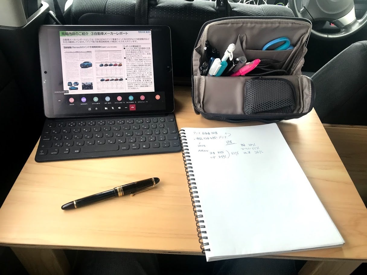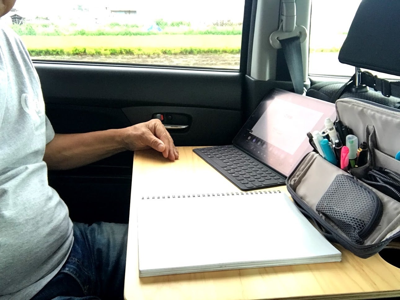 テレワークを快適に!車内で使用するテレワークデスク「わくわくデスク」