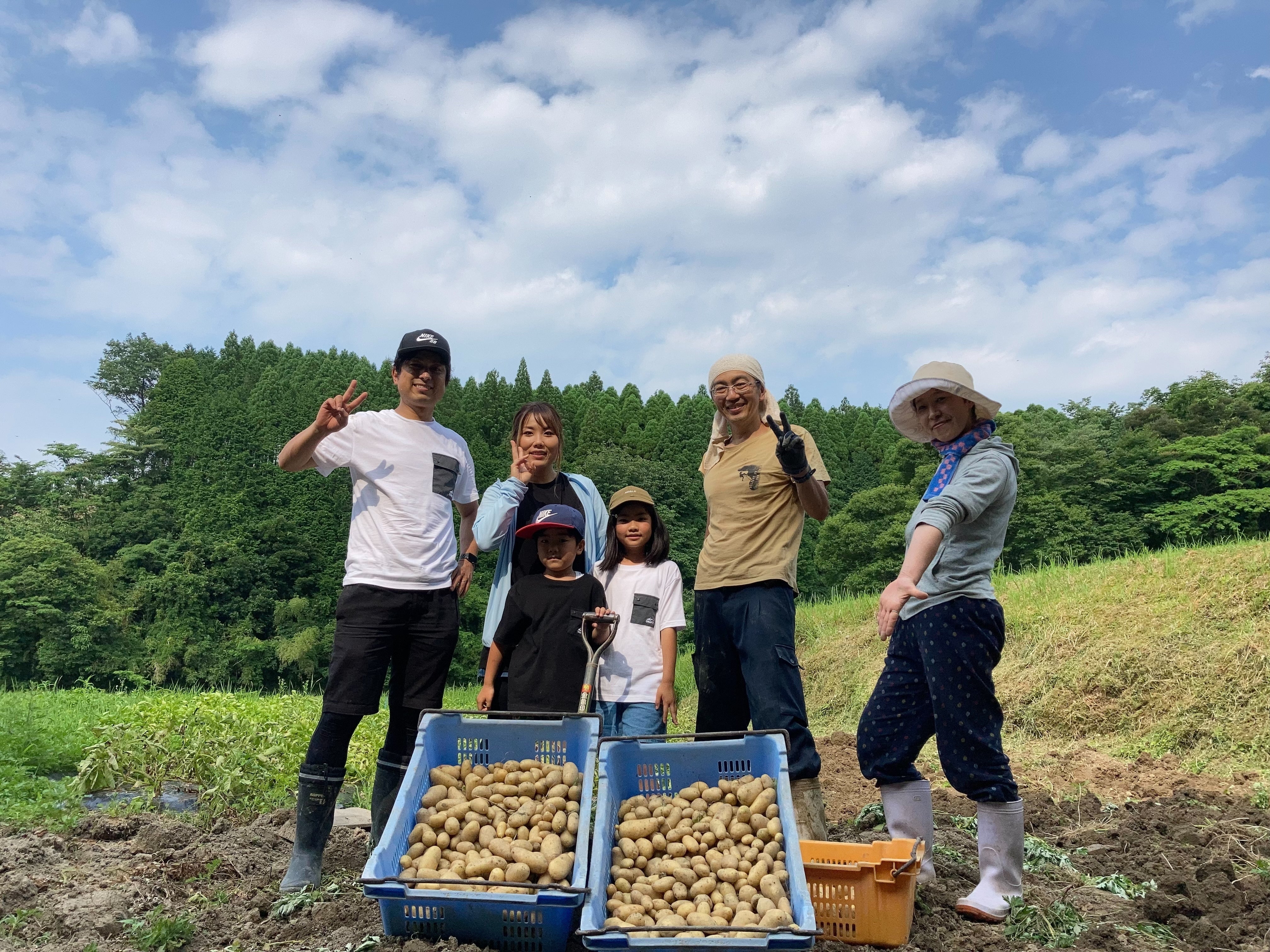 2021/06/28 14:166月26日、気持ちいい青空が広がる山の畑で、ジャガイモの収穫体験をおこないました。今回、恵良農園を訪ねてくれたのは、Twitterで知り合ったフォロワーさんとそのご家族で、お付き合いを始めてから1年以上になります。ここではGさんと呼ぶことにしますね。Twitterを始めた当初、その目的はブログや野菜販売の宣伝になればと簡単に考えていたのですが、Twitterをきっかけにたくさんの方が恵良農園を訪れてくるようになり、SNSの力には驚かされることが多いです。ちょうど1年くらい前のエピソードですが、私が作業中の不注意で左足の親指を複雑骨折してしまい、農作業の繁忙期で困っていたところ、福岡に住んでいるGさん(↑写真左はじ)が一時間ほどかけて頻繁に足を運んでくれて、思うように動けない私を手伝ってくれました。ケガをしてしまったことは不幸だったかもしれませんが、このような経験ができて、私は心から幸せを感じることができました。「人間万事塞翁が馬」とは、まさにこのことだと思いましたよ。Gさんは私より10才ほど年下なのですが、人と人との繋がりにおいて学ばせていただくことが多く、その人格には尊敬の念を抱いています。今回の農業体験では、ピーマンと茄子の収穫が本格化しようというのに、まだまだ掘ってないものがたくさん残っているジャガイモの収穫を手伝ってもらいました。不慣れな作業で最初は 苦戦していたGさんでしたが、慣れてくるとエンジン付きの機械のように掘り進み、そこから転がり出てくるジャガイモを奥さんと子供たちが広い集めてくれました。子供たちは大きなジャガイモが出てくると宝ものを掘り当てたかのように喜んでくれて、日々の作業の中で忘れかけてしまっている「農」に触れることの楽しさを思いださせてくれました。作業のあとは、うちに移動してお茶を飲みながらしばしの談笑。飼っているニワトリと触れ合ったり、ピーマンを生でカジってもらったりしながら楽しい時間を過ごすことができました。欲を言えば、今回のプロジェクトが達成できたら用意する予定のキャンプセットがすでにあれば、宿泊してもらい、もっとゆっくりとした時間を過ごすことができたのですが…それは今後のお楽しみですね。こういう活動を通じて、山の生活の豊かさや「農」と接することの楽しさをたくさんの人に伝えていくことが、私のライフワークだと信じています。 もっと見る