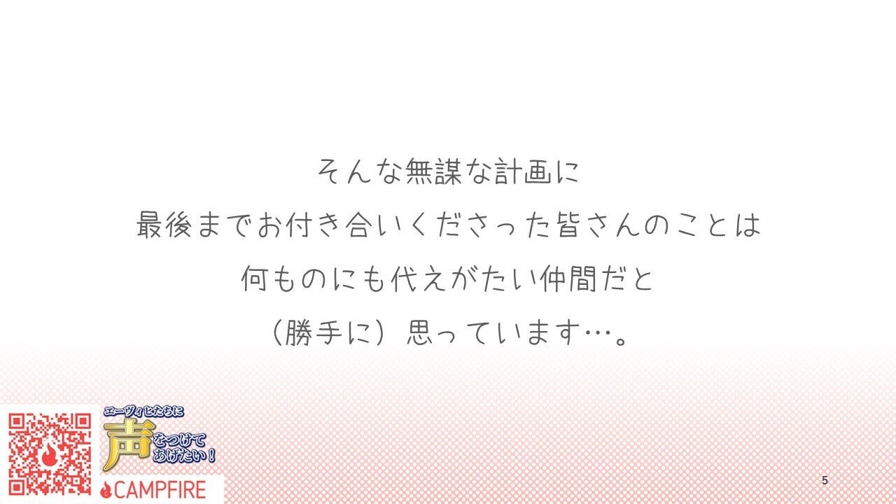 クラウドファンディングの振り返りや、応援コメント&支援者様全員の名前の読み上げとお礼、そして最後には、今後の「エーヴィヒ」に関するお知らせもさせていただきました。