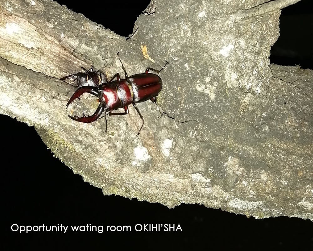 私の家の庭に、とある木がありますが、こないだはノコギリクワガタが来てました。
