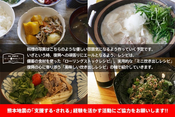 熊本地震の「支援された側」「支援した側」双方のノウハウを結集させたこの 「おいしいミニ炊き出しブック」、実現に向けて、ご支援のほど、どうぞよろしくお願いいたします。