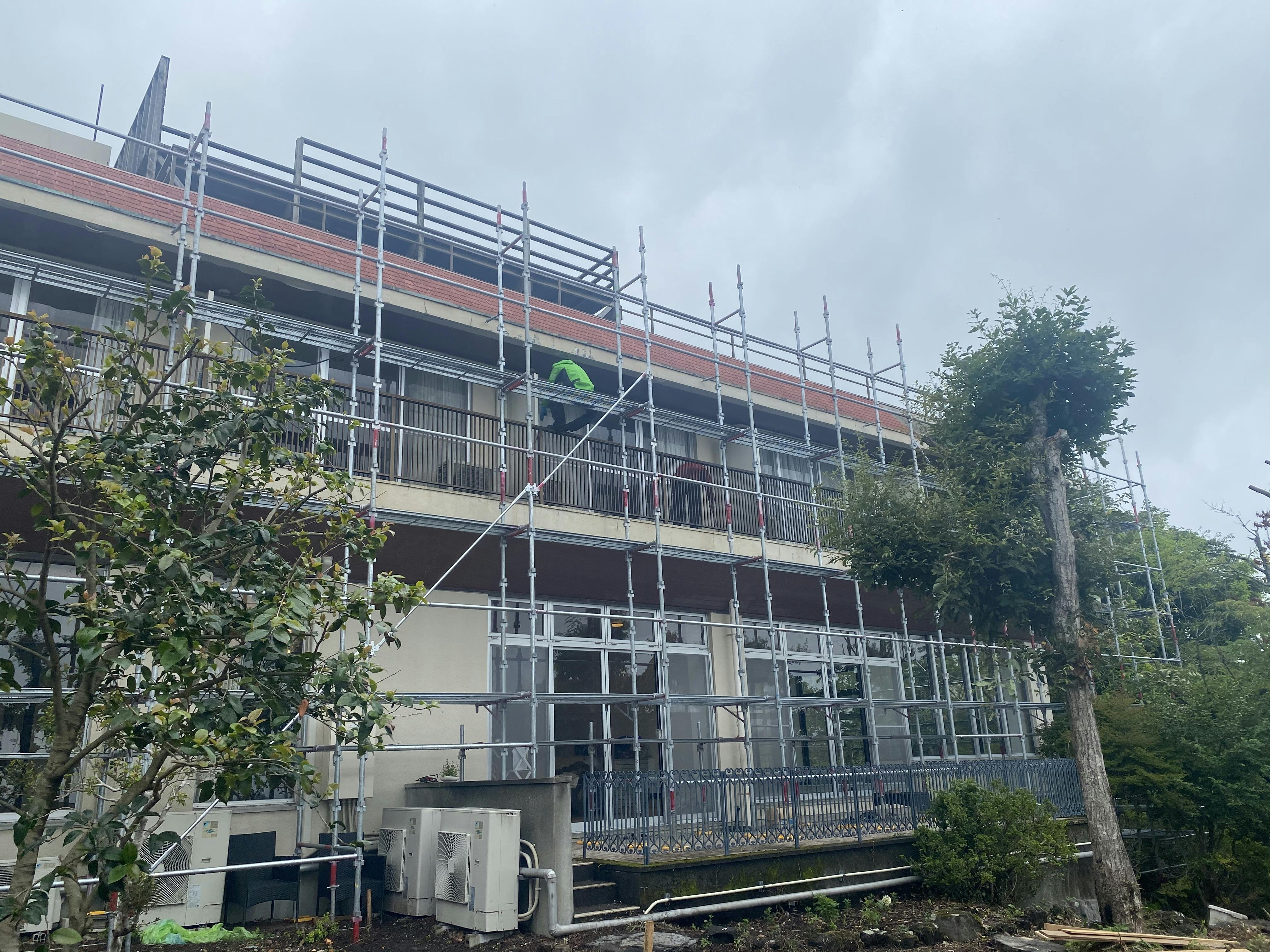 2021/08/03 17:487月半ばから、足場をかけて本格的な外壁修理を行っています。建物が巨大なため、ぐるっと一周回す足場の量もハンパではないです。手際良く足場を組んでいく職人さんたち、足場がかかり次第、早々にペンキやさんや屋根屋さんが仕事にとりかかり、連携が素晴らしいなと思いました!足場をかけての工事も終盤に入ってきて、来週には真新しい外壁と屋根がお披露目できると思います。お世辞にも綺麗とは言えなかった、リノベーション前の外壁や屋根が、新しくなって登場するのが待ち遠しいです! もっと見る