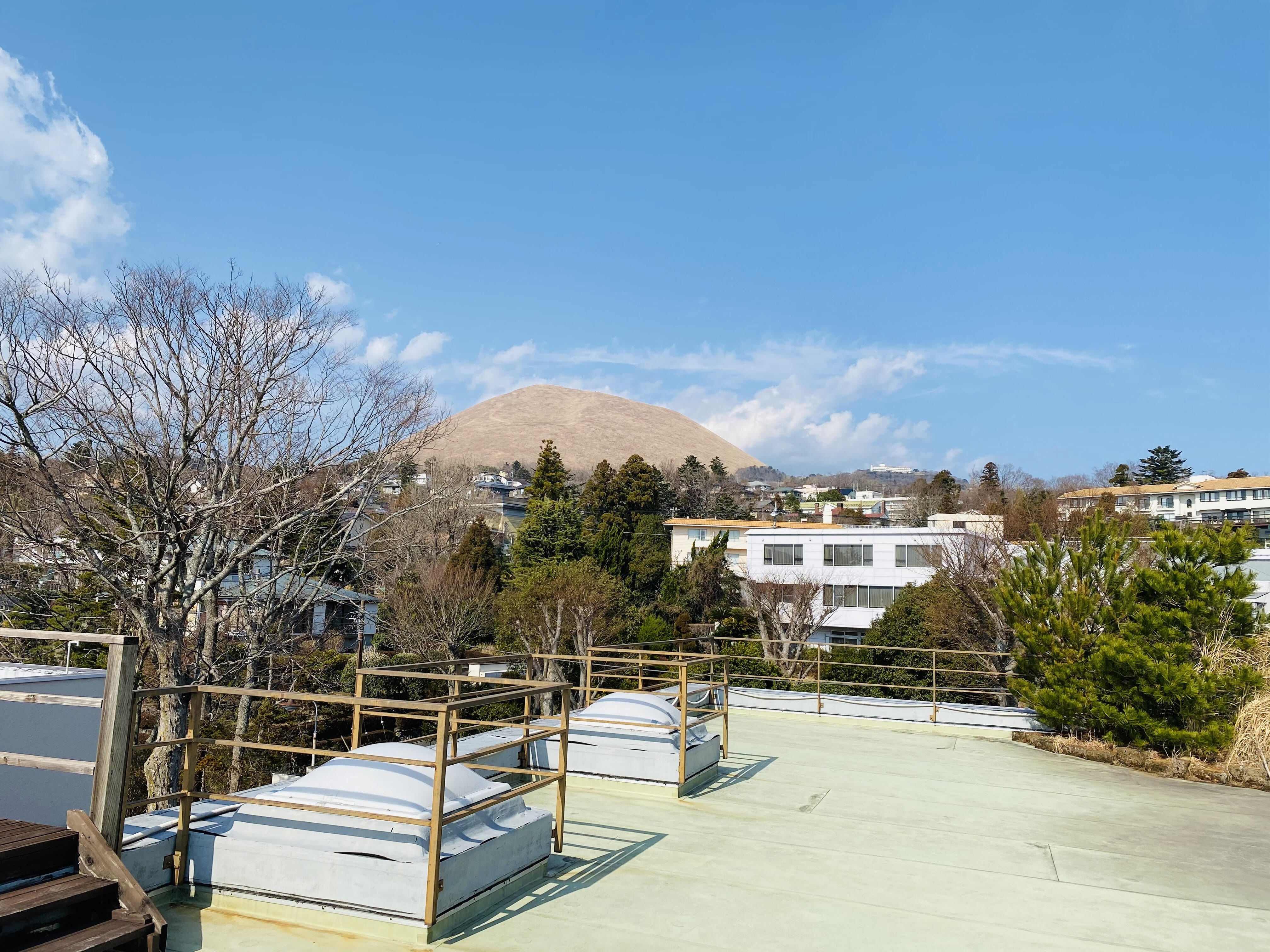 海の反対には大室山 伊豆の景色が360°楽しめる