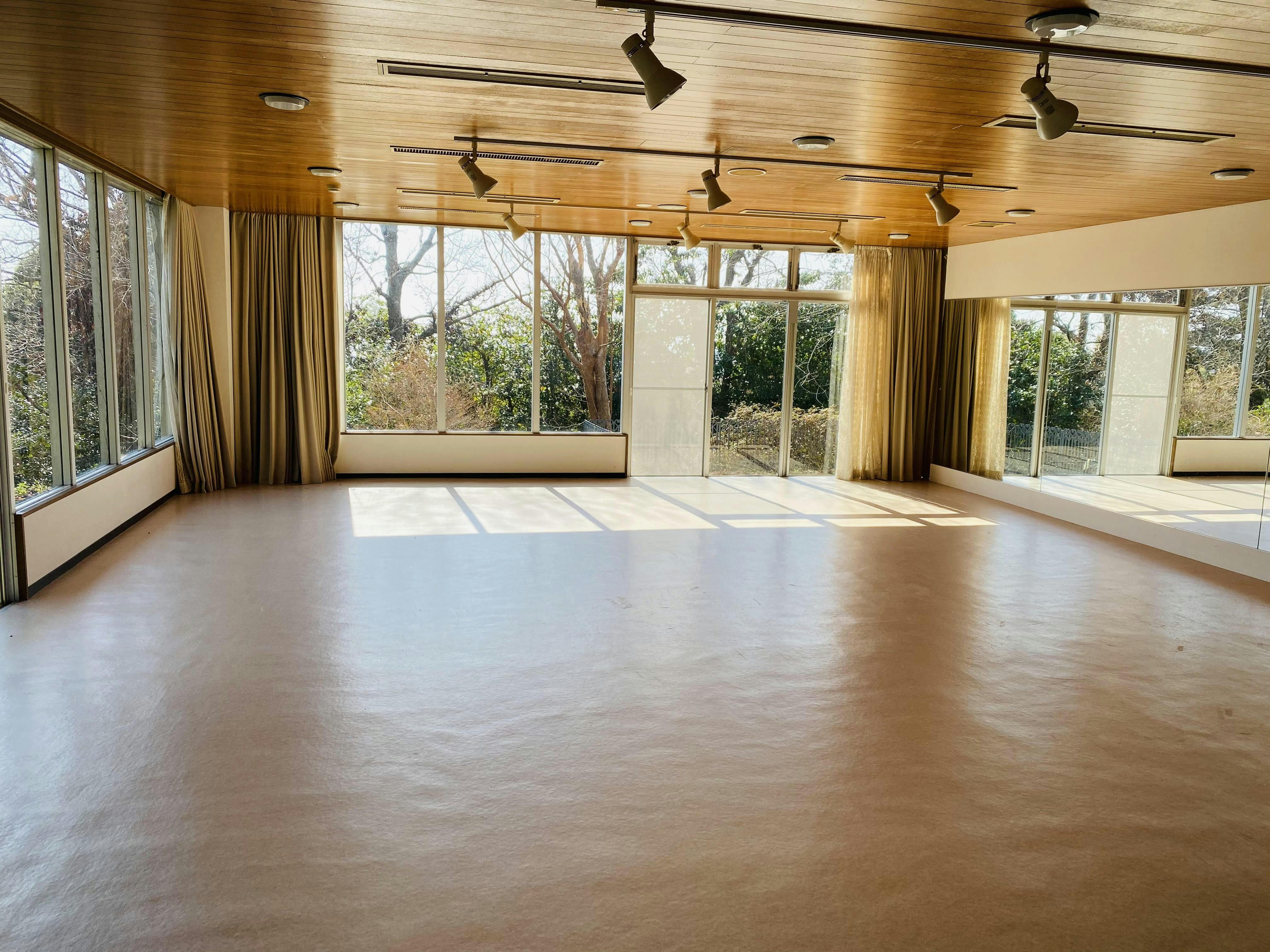鏡張りのスタジオ(多目的スペース) 窓の外の自然も楽しめる