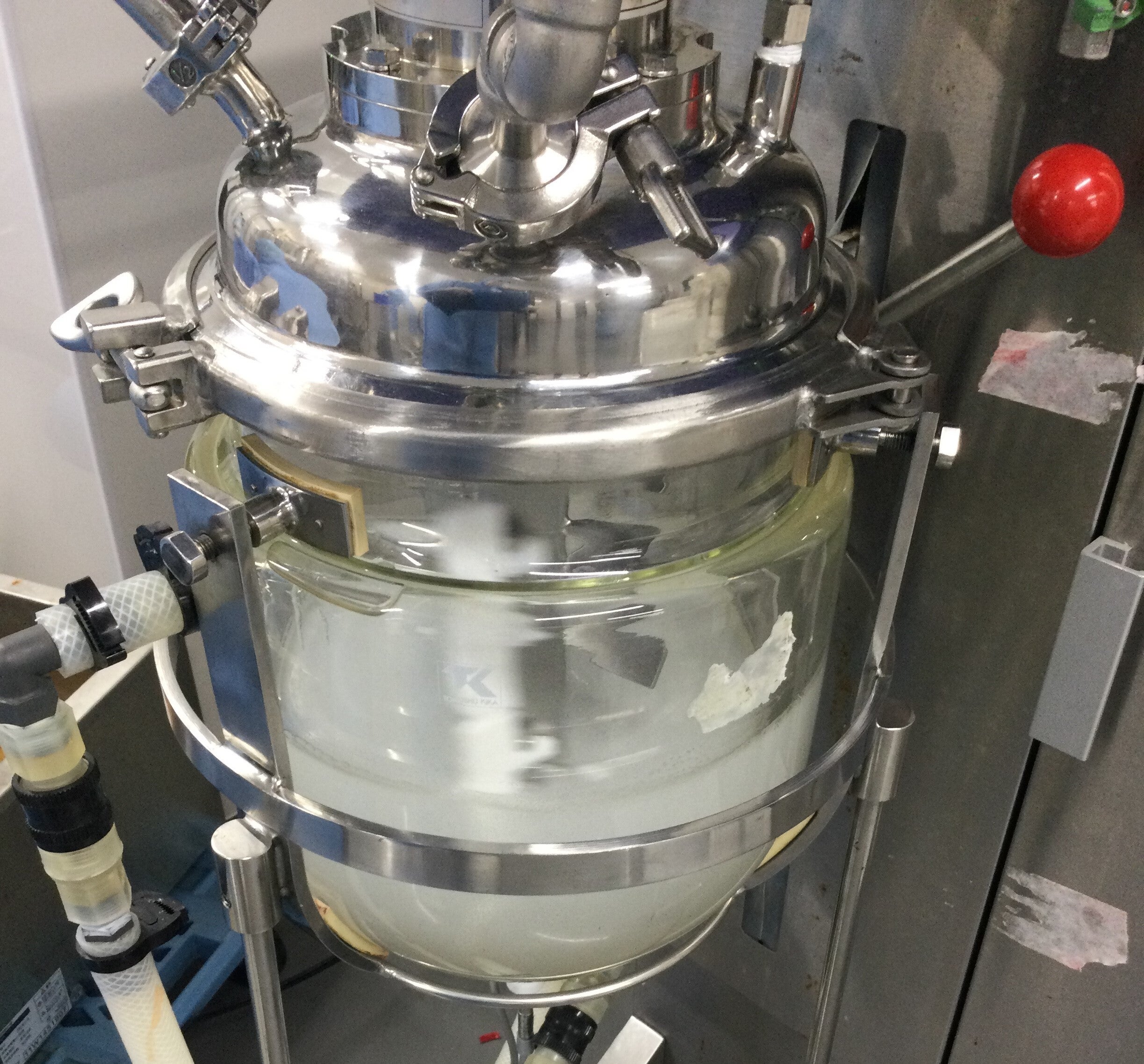 今はまだ液状ですが、ここから更に原料を追加しクリーム状になっていきます。