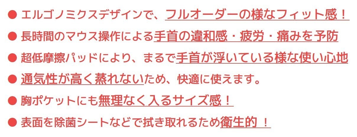 ハードマウスパッドとの相性が良く、まるで手首が浮いているかのような使い心地