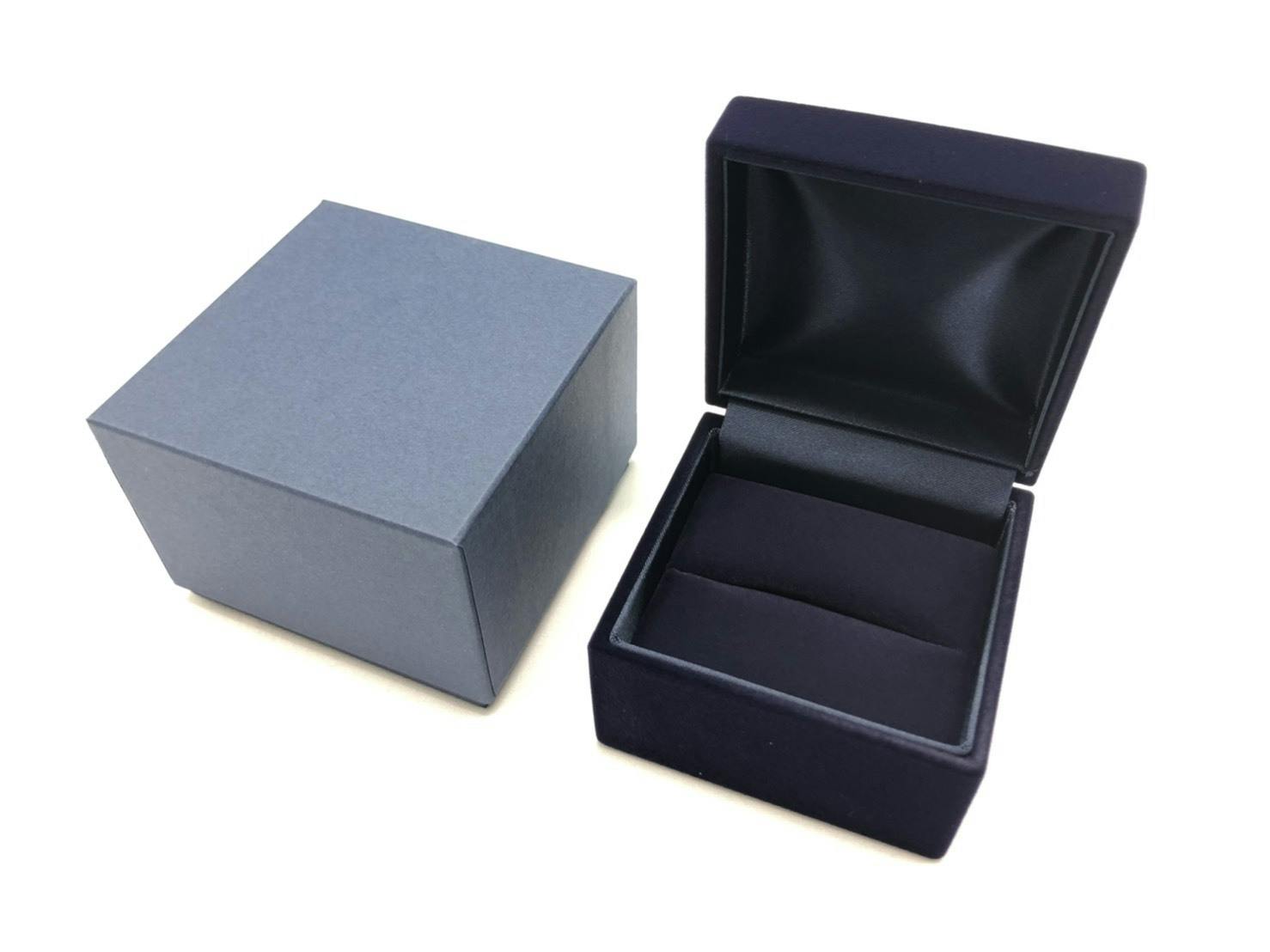 リングは、ダークブルーのフロッキング素材のリングケースを。