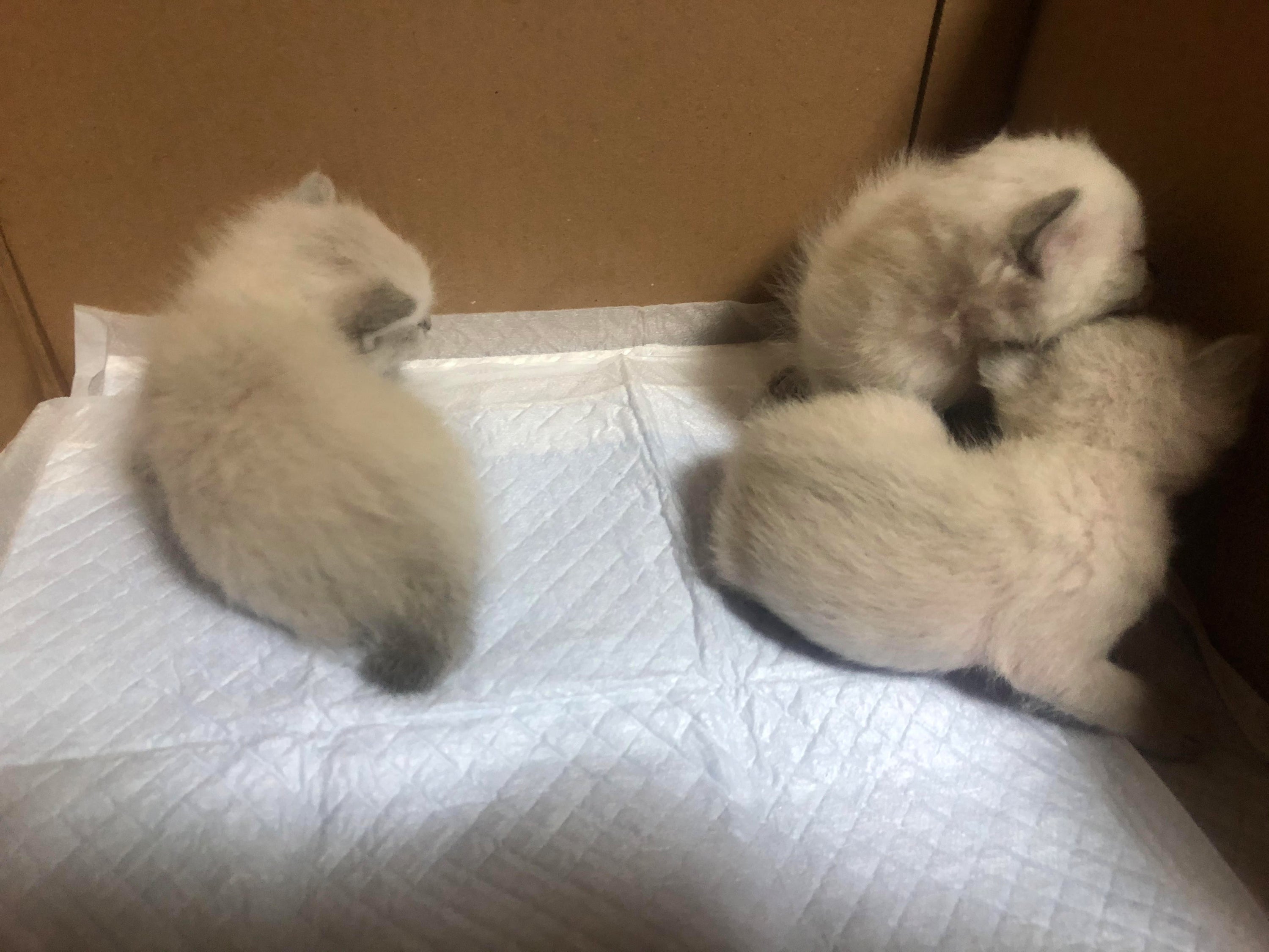 まず1つ目は知り合いの家の軒下で大雨の日に保護した3匹の子猫と親猫の保護継続と里親探しです。