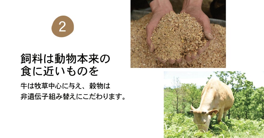 餌も牧草は100%自家製で、穀物は非遺伝子組み替えのものを使用しています。