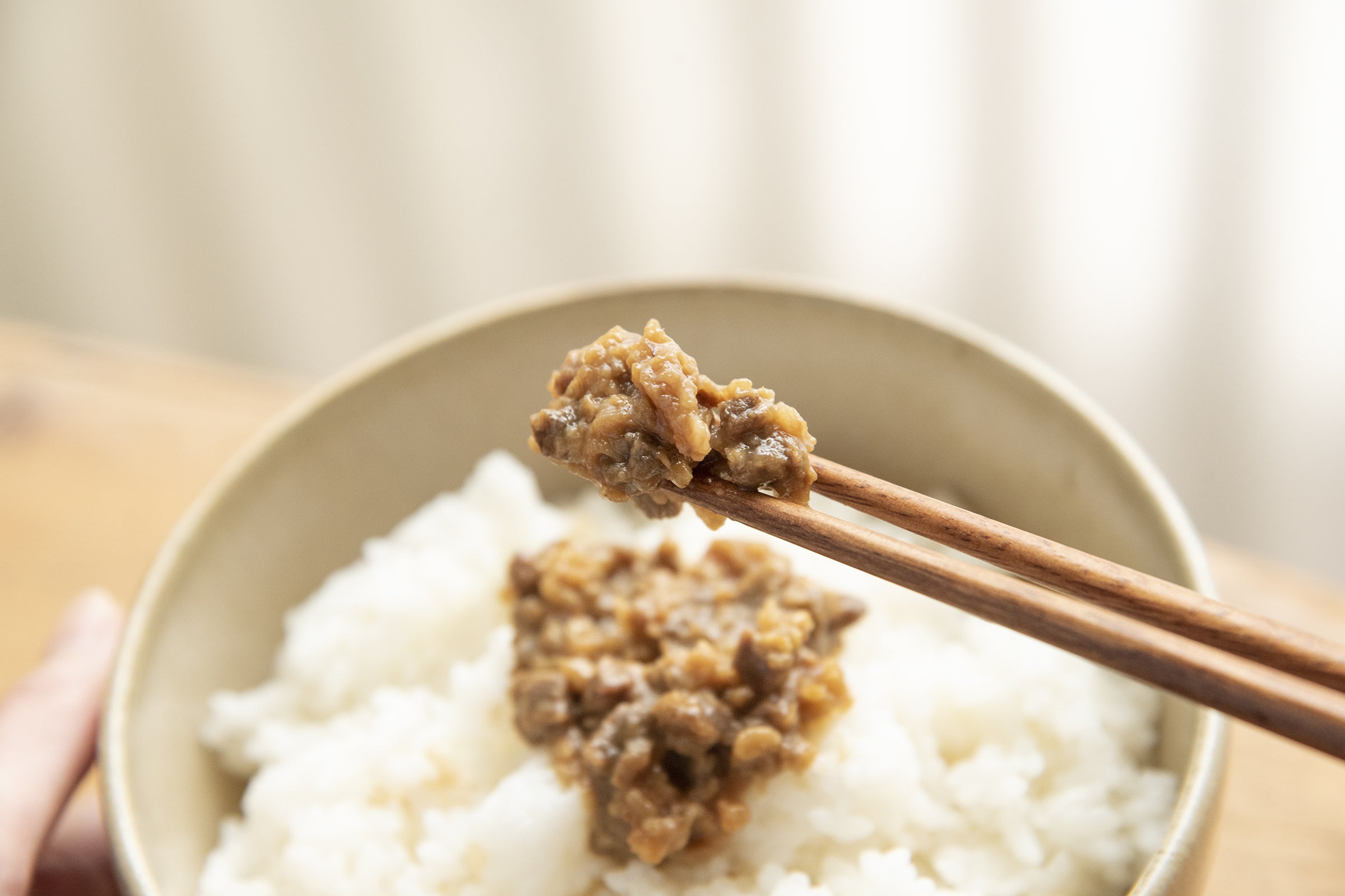 ご飯に乗せるだけではなく、生野菜につけたりうどんに乗せたり、様々なアレンジを楽しめる肉味噌です。これから開発する他の5種も、食感の違いや辛みなど飽きのこない肉味噌にする予定です。