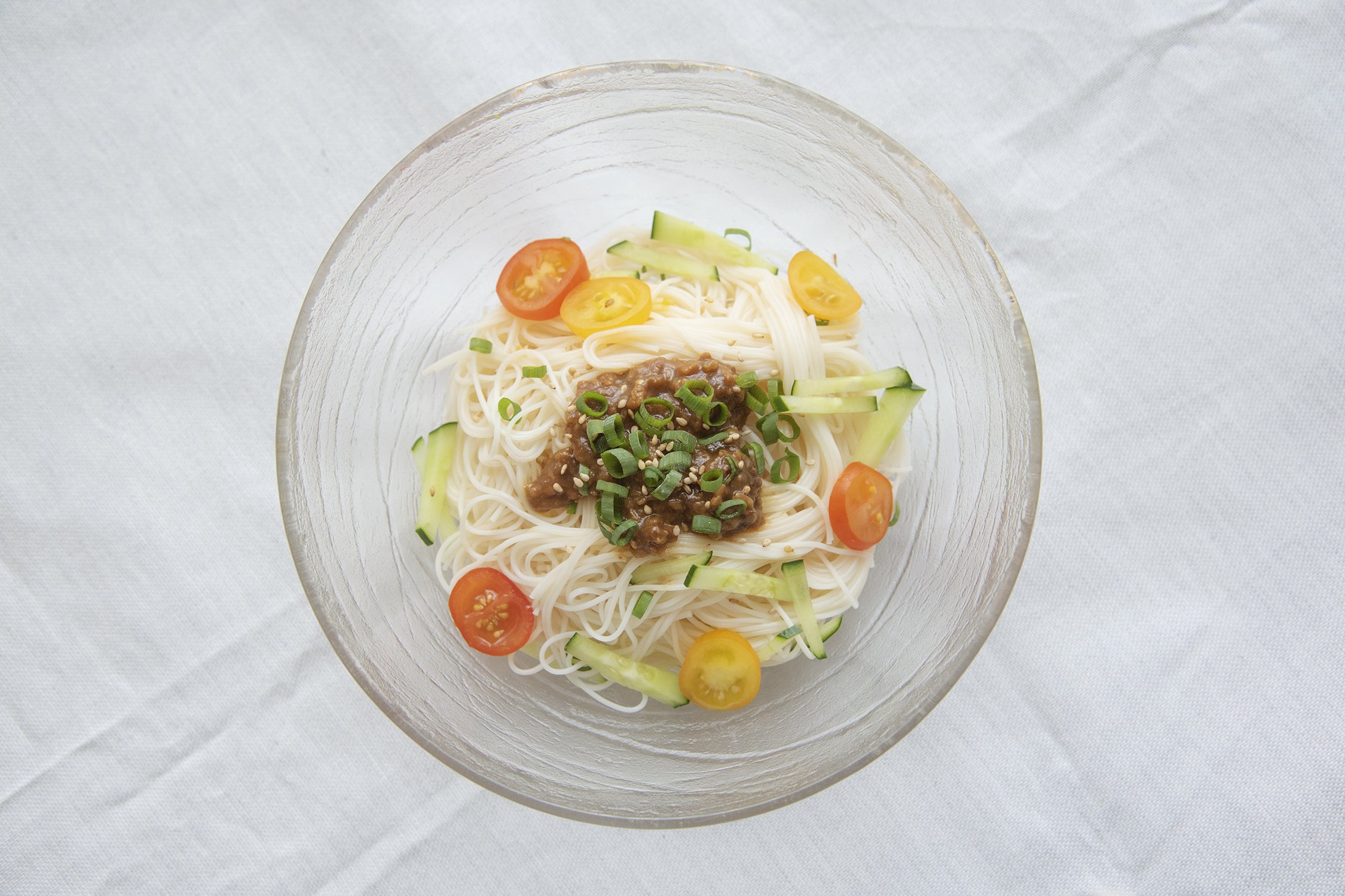 ○材料材料(1人前)○肉味噌モノガタリ〜井さんのあか牛編〜・・・大さじ1.5(またはお好み)○そうめん・・・一羽○万能ネギ・・・お好みの量○お好みのお野菜(今回はミニトマトときゅうり)作り方1.ネギ、お好みの野菜を一口サイズに切ります。2.鍋にお湯を沸かし、表示通りにそうめんの麺を茹でる。3.茹で上がったら肉味噌と万能ネギ、お好みの野菜をのせて出来上がり♪