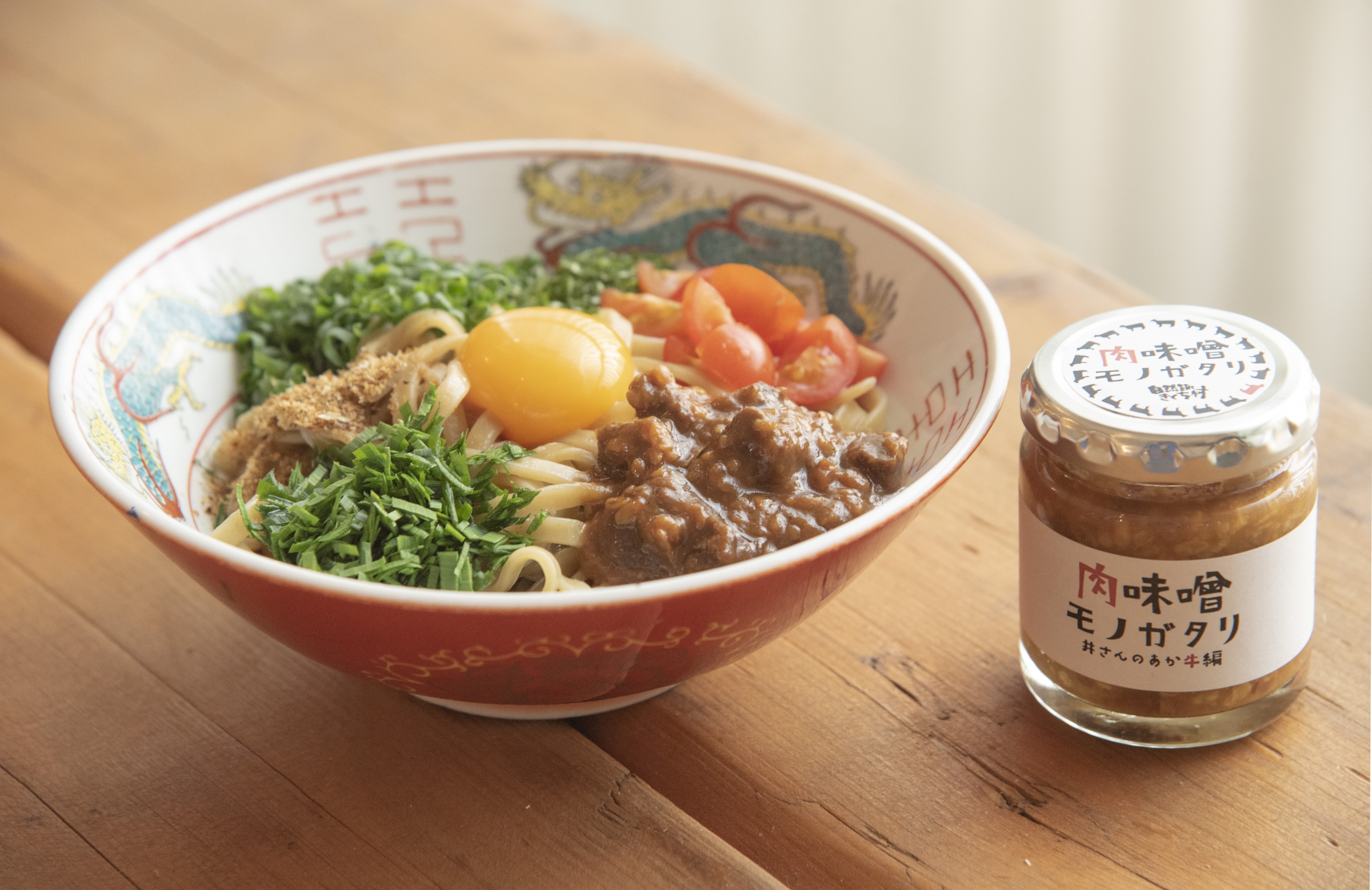 材料(1人前)○肉味噌モノガタリ〜井さんのあか牛編〜・・・大さじ1.5(またはお好み)○走る豚のまぜめんの麺とタレ・・・1セット○卵・・・・・・1個○万能ネギ・・・お好みの量○ニラ・・・・・お好みの量○大葉・・・・・1枚○かつおぶし・・少々○お好みのお野菜(今回はトマト)作り方1.大きめの鍋にお湯を沸かし、沸騰したら麺を冷凍のまま茹でます。2.麺を茹ではじめてから3分30秒~4分(お好みで調整)経ったら麺を上げ、器に移します。3.お皿に盛り付けタレをかけます。2.ネギ、ニラ、大葉をみじん切りに、お好みの野菜を一口サイズに切ります。3.卵の黄身とかつおぶし、肉味噌をかけて出来上がり♪夏にぴったりで食欲がなくても食べられる一品です。是非作ってみてください^^