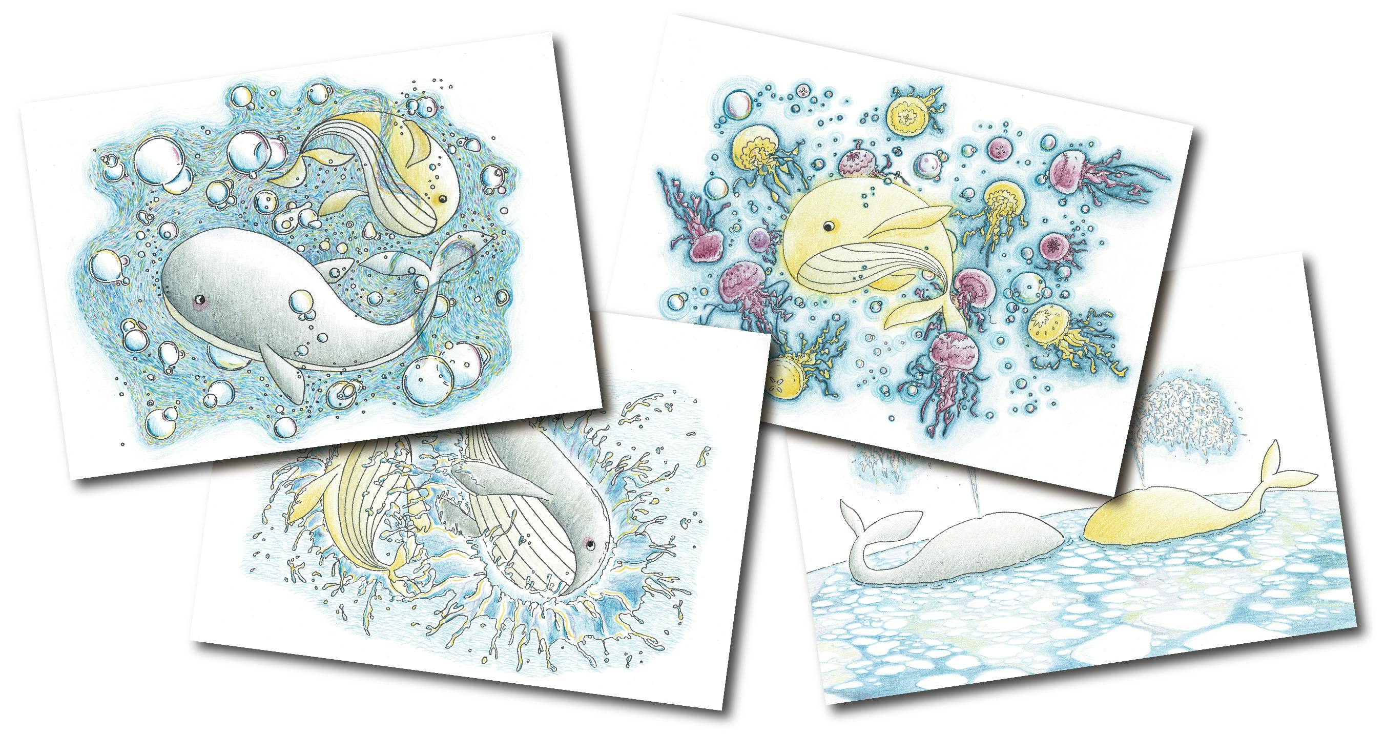 柔らかい色だけの色鉛筆を使って