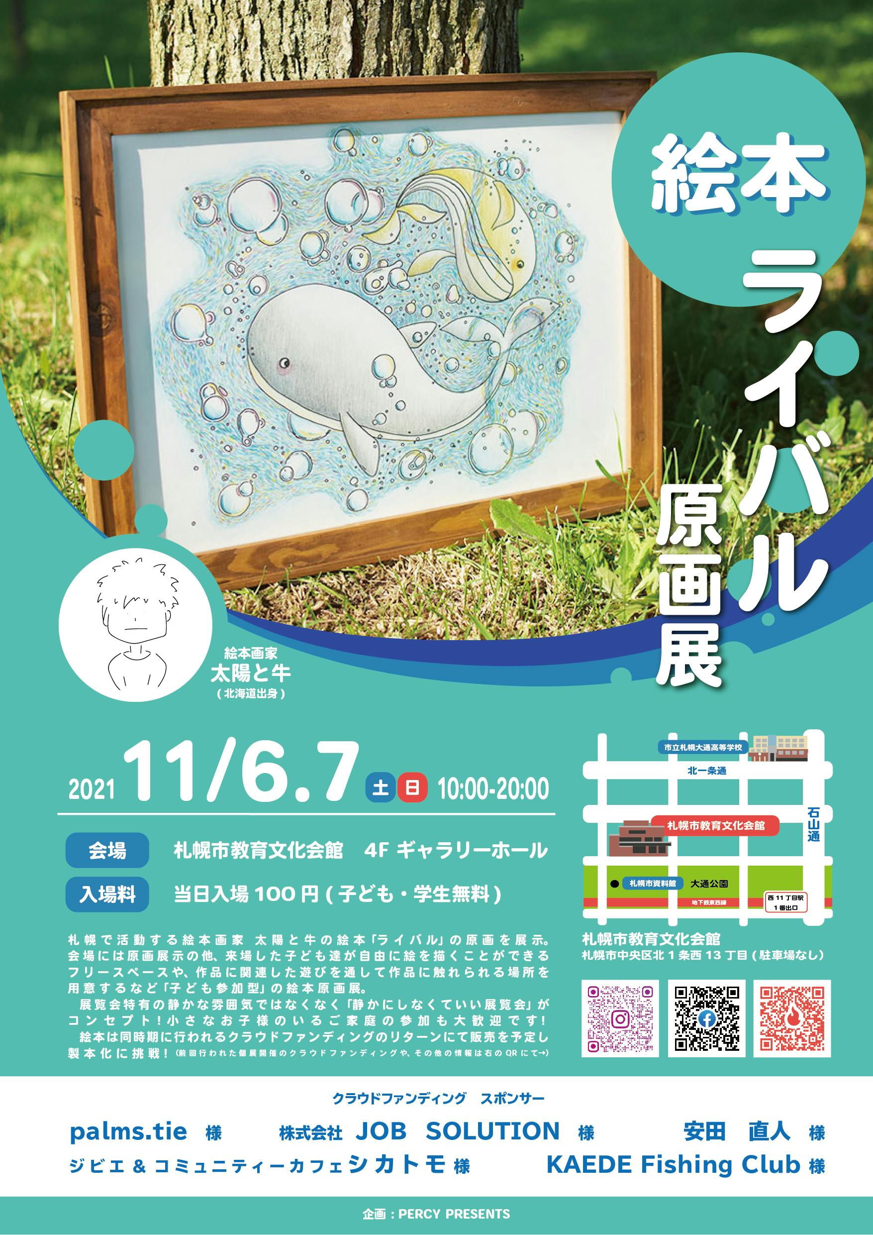 2021/12/07 10:58こんにちは11月6.7日の絵本ライバルの原画展みなさまのおかげで無事終了する事ができました。子ども達が楽しんでくれた様子や、ボクも予想していなかった大人の方の新たな発見の機会となれた事など原画展を開催させていただけてとても嬉しく思います。個展の結果や詳細については、記事にまとめましたので、実際に会場に来ていただいた方も、残念ながら来れなかった方も、当日の様子などご覧ください。https://note.com/taiyou_to_ushi/n/n2c11884b0e67 もっと見る