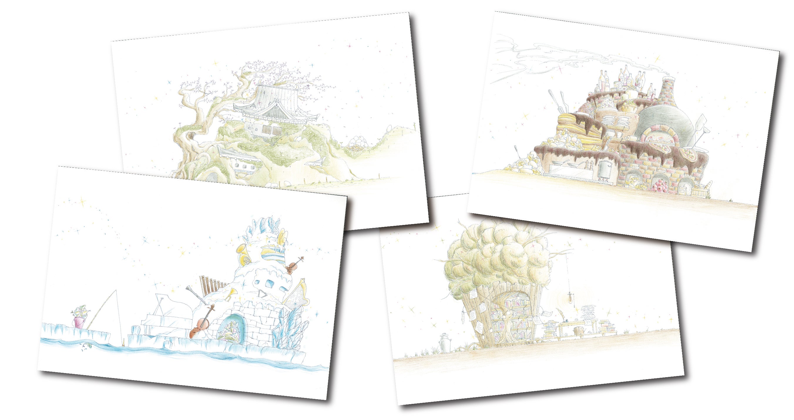物や場所を細かく描きあげ