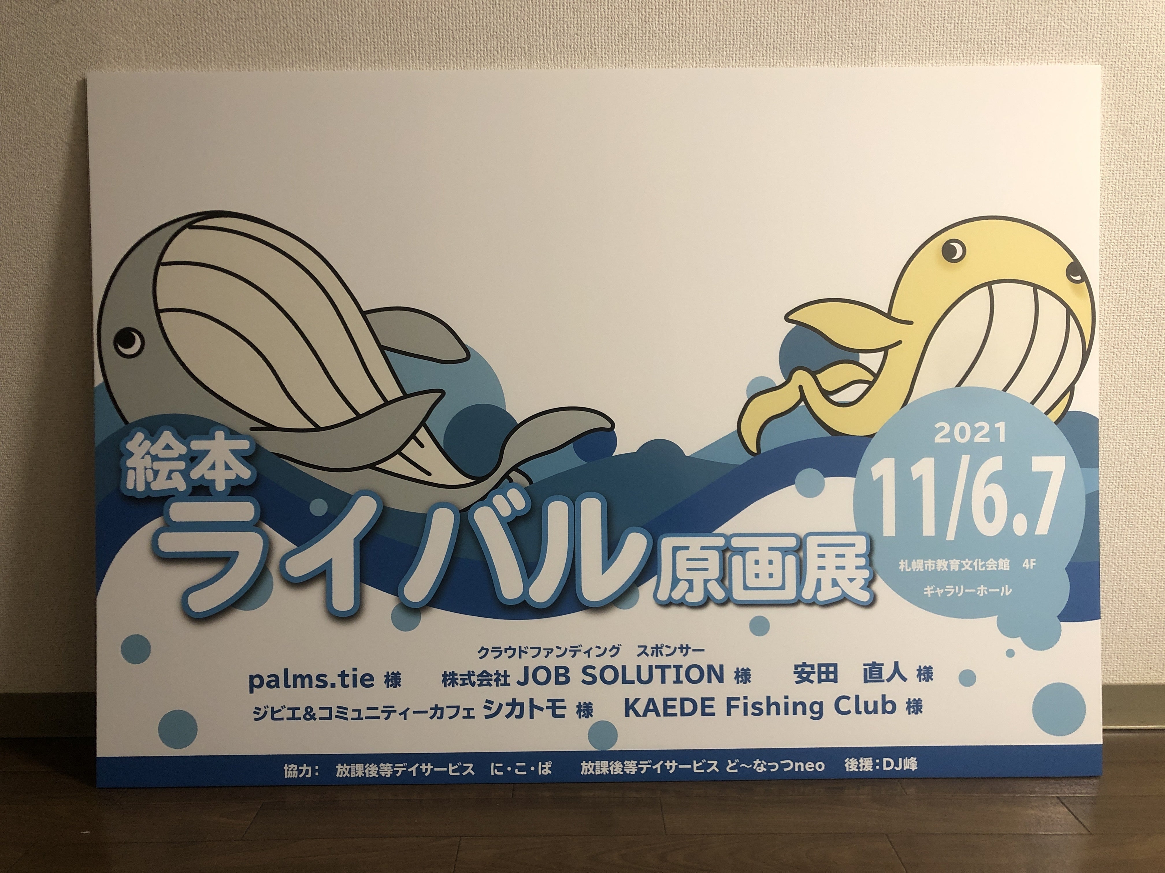 2021/11/02 13:28いよいよ絵本ライバル原画展が今週末11月6.7日で開催されます!!!そしてA0サイズの大きなポスターパネルが届きました!!個展のメイン看板として役に立ちます!余白の部分は絵に沿ってカットをして写真が撮れるようにします!!会場に来れる方は是非ここで写真を撮ってSNSに載せてね!! もっと見る