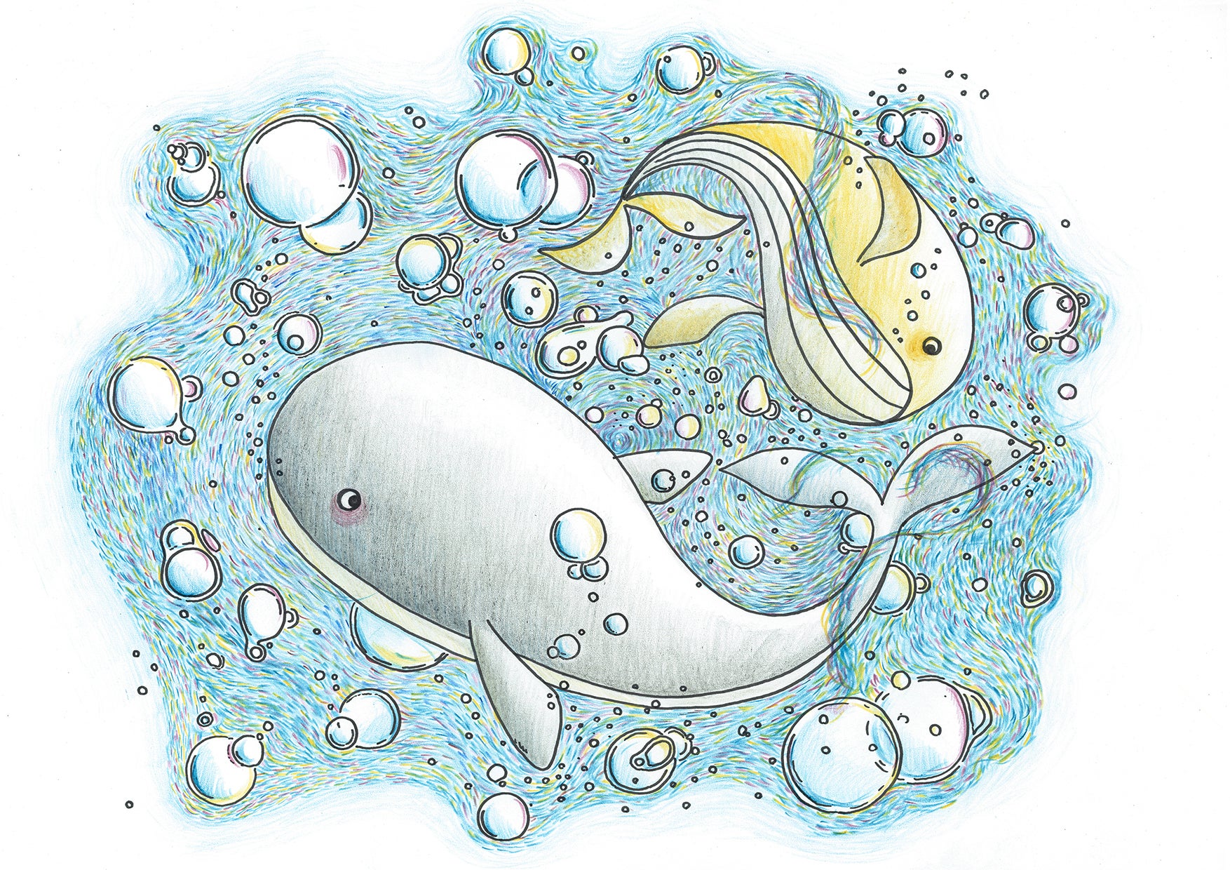 柔らかい色だけの色鉛筆を使って