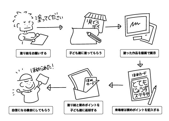 2)その褒めコメントと子ども達に塗り絵を一緒に