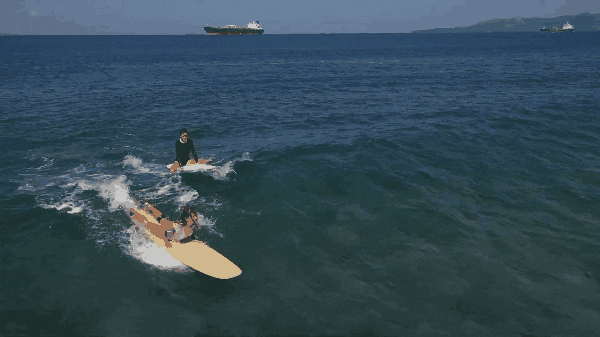 BoostFin(ブーストフィン)があれば小さな波でも乗ることができる。波に乗る感覚を体験してしまうとサーフィンの虜になってしまうかも!?