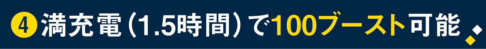 A, 一回の満充電で、100 Boost もしくは、連続 Boostなら 60分〜90分ご使用が可能です。