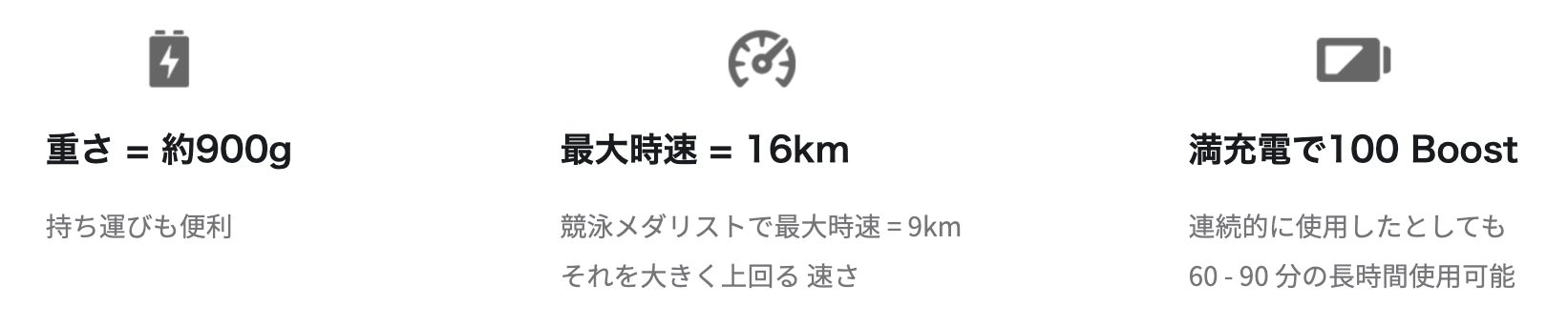 手元のボタン一つで、最大時速 = 約16km を繰り出せる電動モーター付きの最新フィンです。