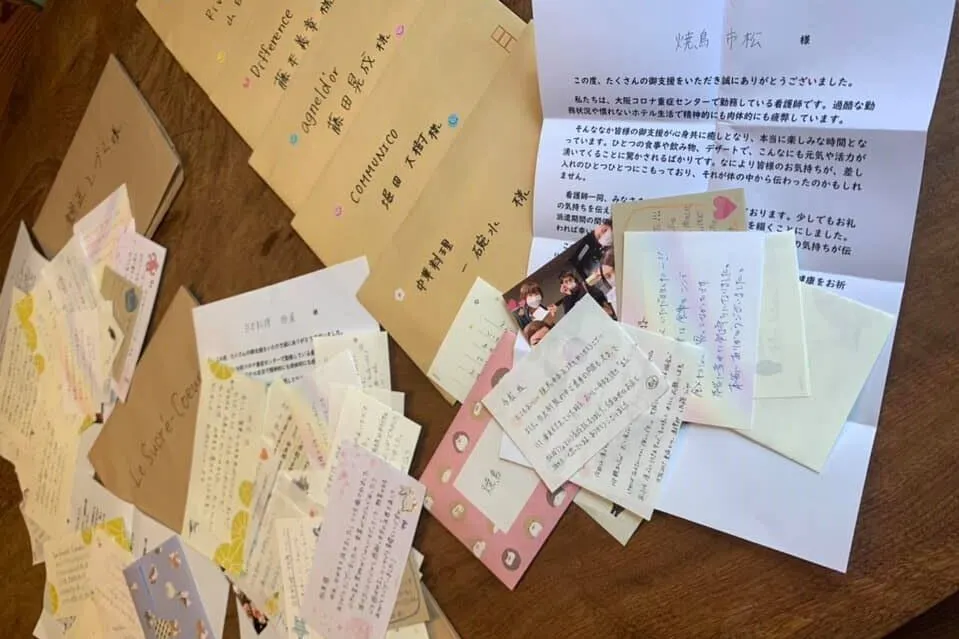 「家族を置いて大阪で働くために単身で来ていますが、シェフ達の食事をいただく時は、唯一ほっと安らげる時間です。」と、喜んでくださっており、シェフ達への感謝の手紙も250通超集まってきています。また飲食店からは、「コロナ禍で気分が落ち込むことも多いが、この取り組みで皆さんの笑顔を見ると、自分たちが役に立っていることを実感でき、モチベーションになります」といった声をもらっています。