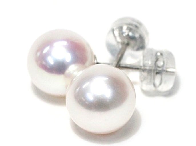 照り巻花珠クラスの稀少 9mmUP SVネジバネ式イヤリング ロジウム仕上げ