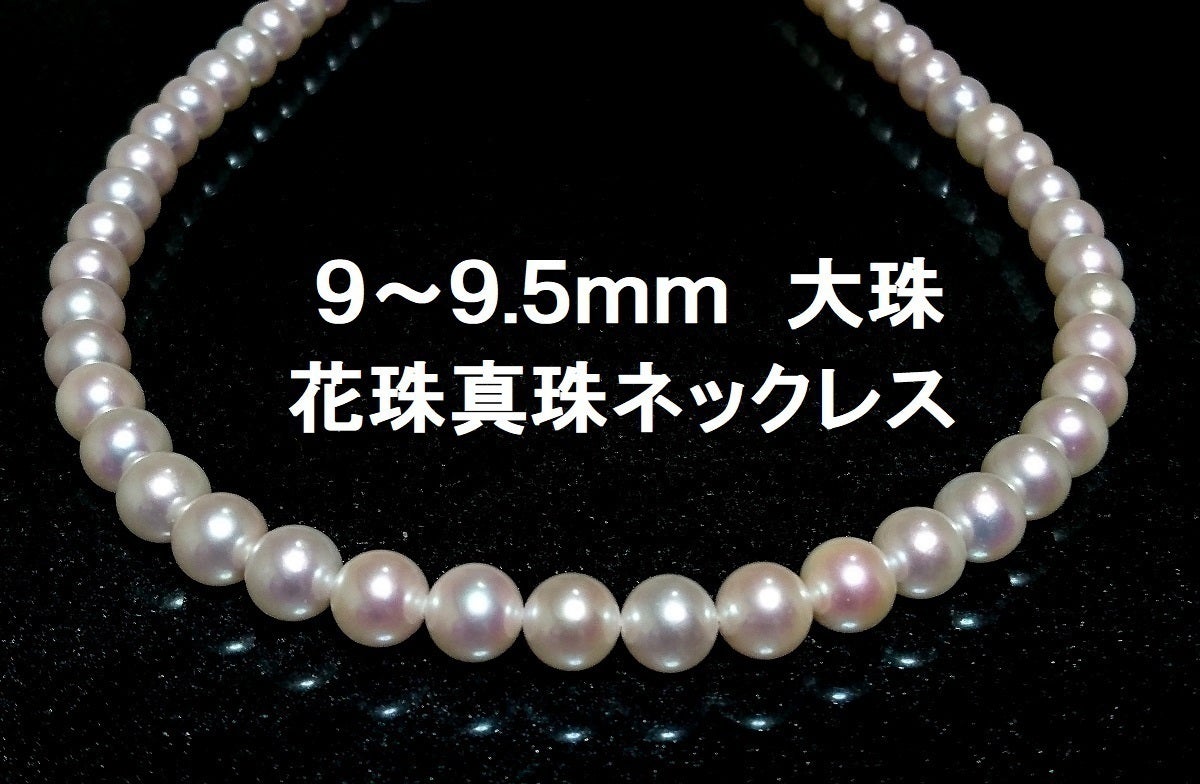 稀少大珠9-9.5mm 花珠真珠ネックレス
