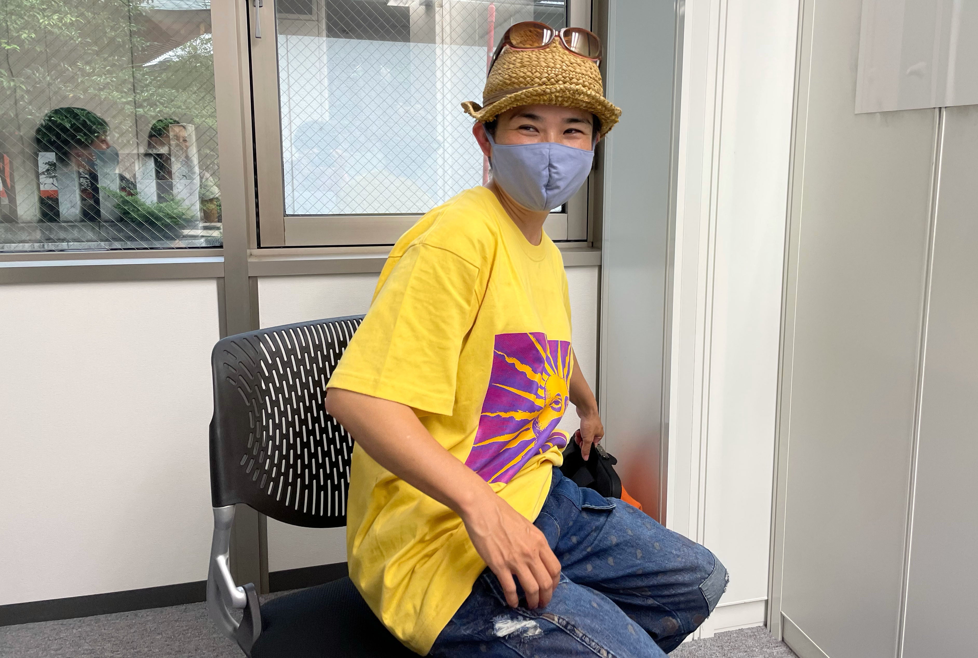 写真ではクラファンリターンのために試作したABE-Tの黄色を着てきていただきました!!よく似合っていてとても可愛いです。
