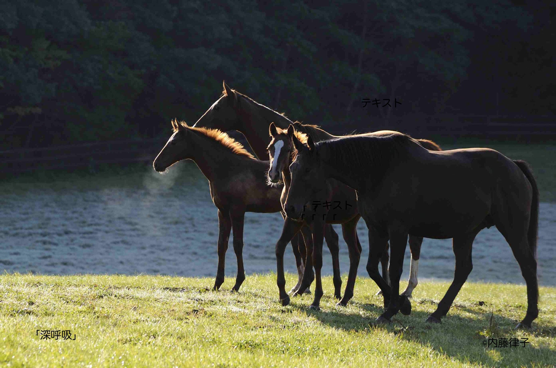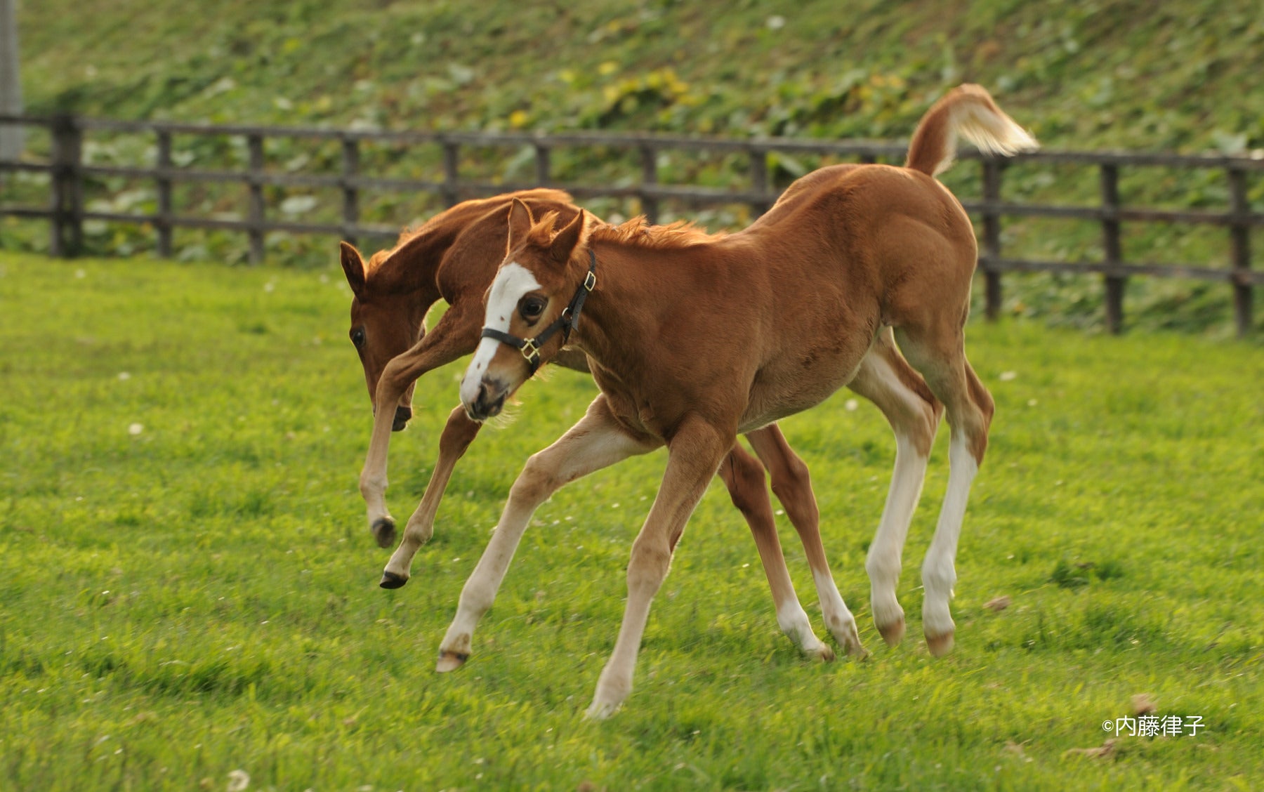 私は、内藤さんの撮られる仔馬の表情が好きです。やがて、サラブレッドとして活躍する馬たちの、瞬く間に過ぎていく素晴らしい時間を切り取った、貴重な一枚と思うからです。たくさんの方のお手元に届くことを願っています。