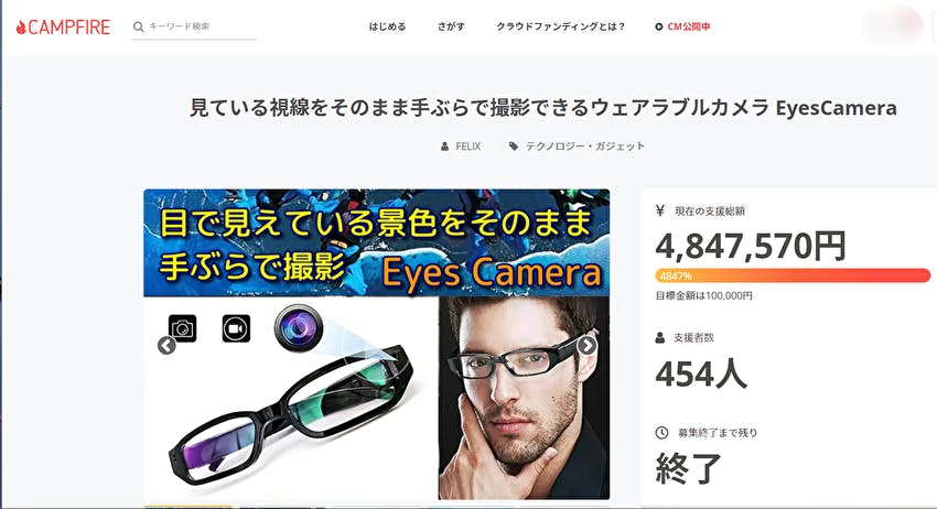 2024/08/05 15:40これまでCAMPFIREでのプロジェクトに、ご関心をお寄せいただきましてありがとうございます。このたび新しいプロジェクトとして、メガネ型ウェラブルカメラEyes CameraとスマートグラスのSmart Eyewearの機能を合わせもった、カメラ機能付きスマートグラスEye Visonのプロジェクトがスタートしました。https://camp-fire.jp/projects/view/779006もしこのプロジェクトにつきましてもご関心をおもちいただけるようでしたら、ご支援を賜れれば幸いです。よろしくお願い申し上げます。 株式会社フェリクス もっと見る新しいプロジェクトについて