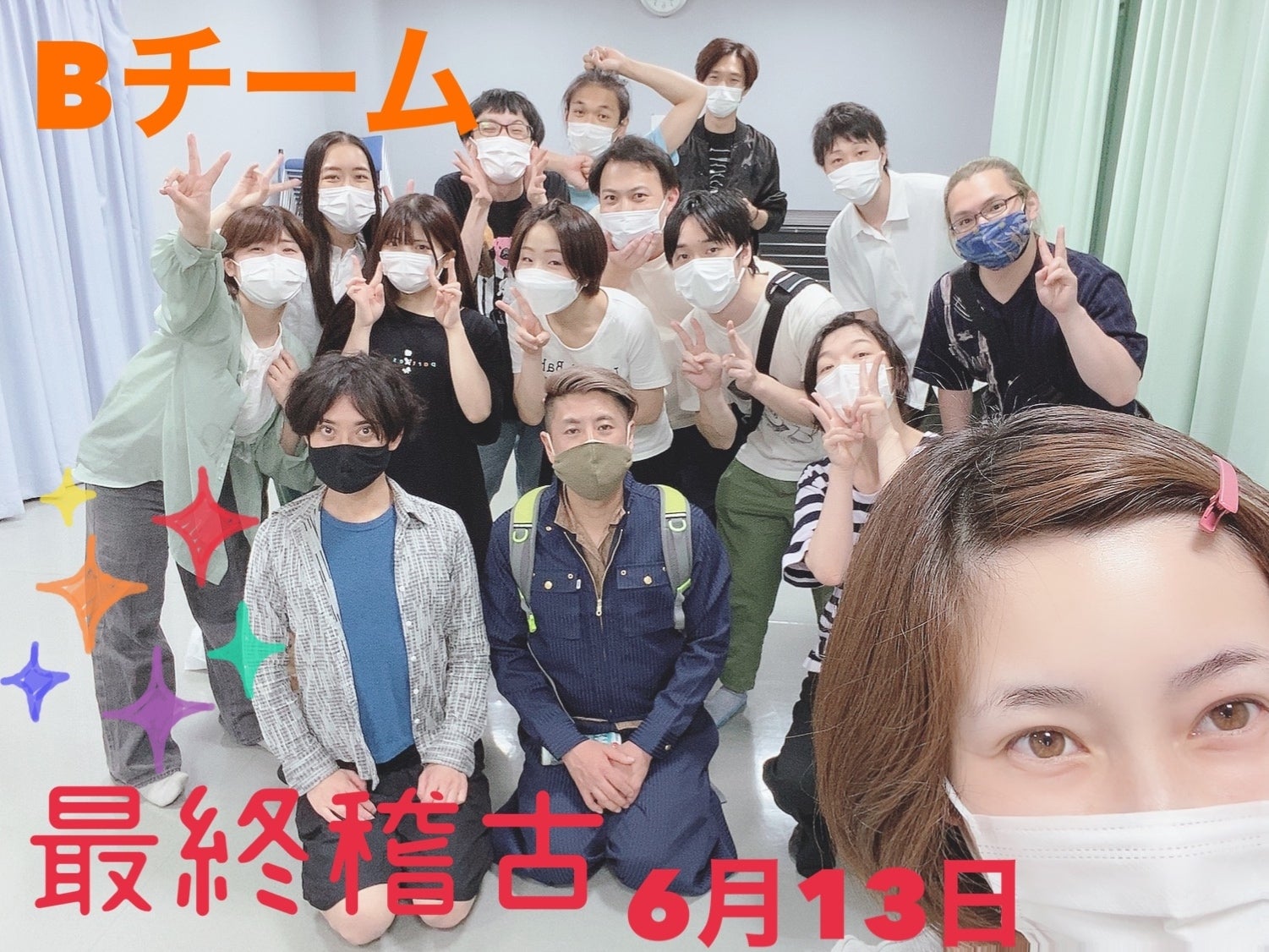 昨日はBチームの最終稽古でした!Bチーム仕上がっております♪後は本公演で皆様に楽しんでもらうのみです!石上卓也さん、大柿誠さん、春日奈々子さん、榊原悠祐さん、白岩太郎さん、奥原ひとみさん、中村亜海さん、玉城美来さん、小林佑太さん、安河内広大さん、三嶋賢之さん、菊池聡子さん、藤原本比呂。さんこのメンバーでパワーをお届けします!奥田咲