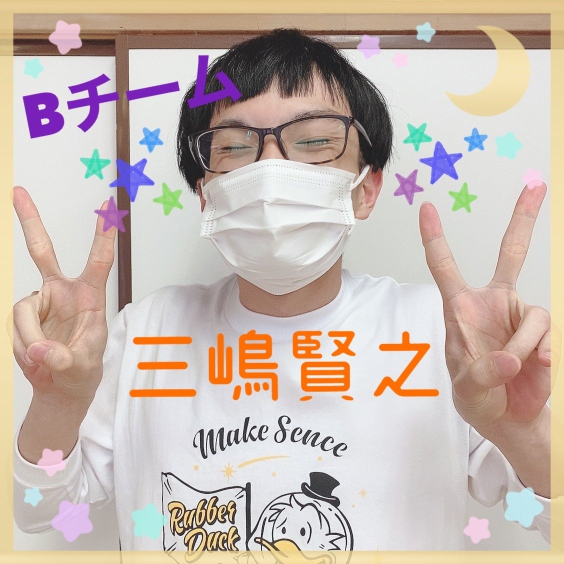 Bチームに出演する三嶋賢之さんです!三嶋さんは人見知りなのかな〜という感じの方です!見た目はムードメーカーっぽく見えますが、お稽古場では、とても大人しいです!ですが、先ほどシーン稽古の時にとんでもない爆笑を呼び込んでくれました!お顔を真っ赤にさせるぐらいハッチャケていた三嶋さんを見れて良かったです!ステージ上ではどんな顔を見せてくれるのでしょうか?リアクションが芸人さんみたいだよ!三嶋賢之