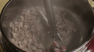 カットした豚バラ肉を油で炒めます
