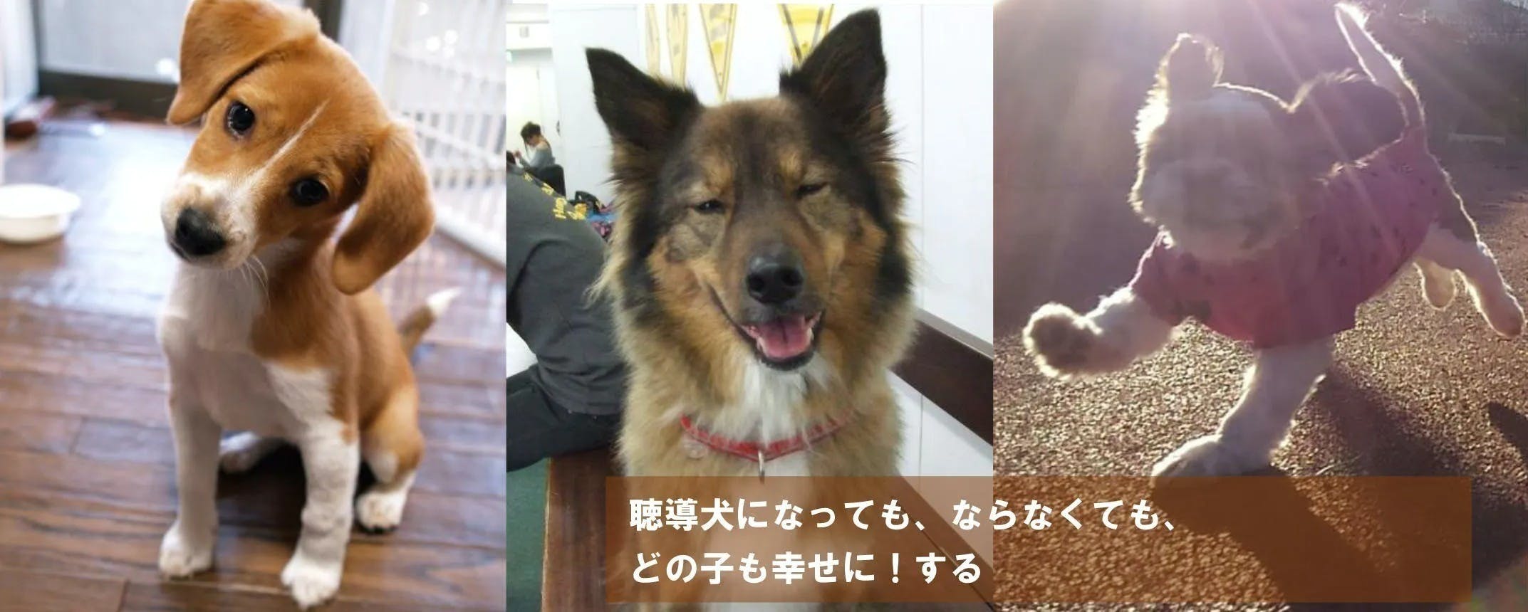 みなさまからのご寄付は、「聴導犬」「介助犬」育成事業のみに遣わせていただきます。
