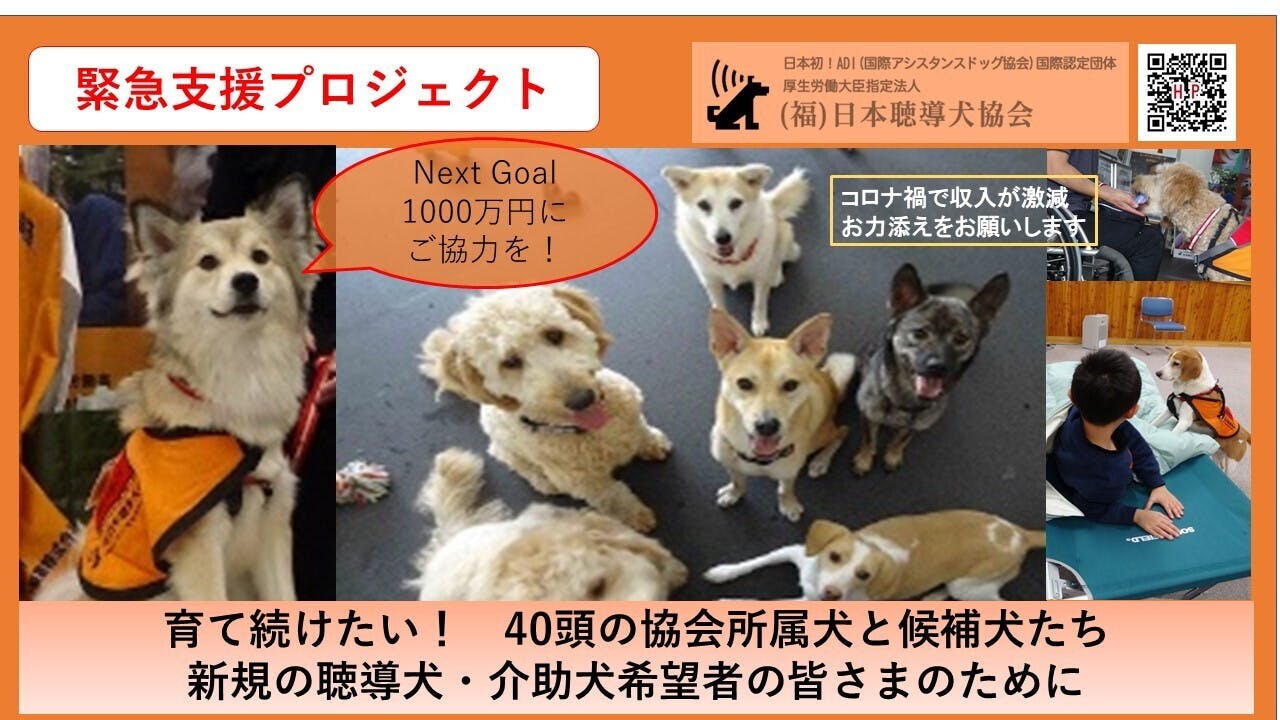 すでにみなさまから750万円ものご支援をいただいてはいるのですが、現在、収入がさらに下がってきています。40頭の育成費用と聴導犬・介助犬希望者様のために、第2ゴール 1000万円に向かってお力添えをいただけますようお願いいたします。