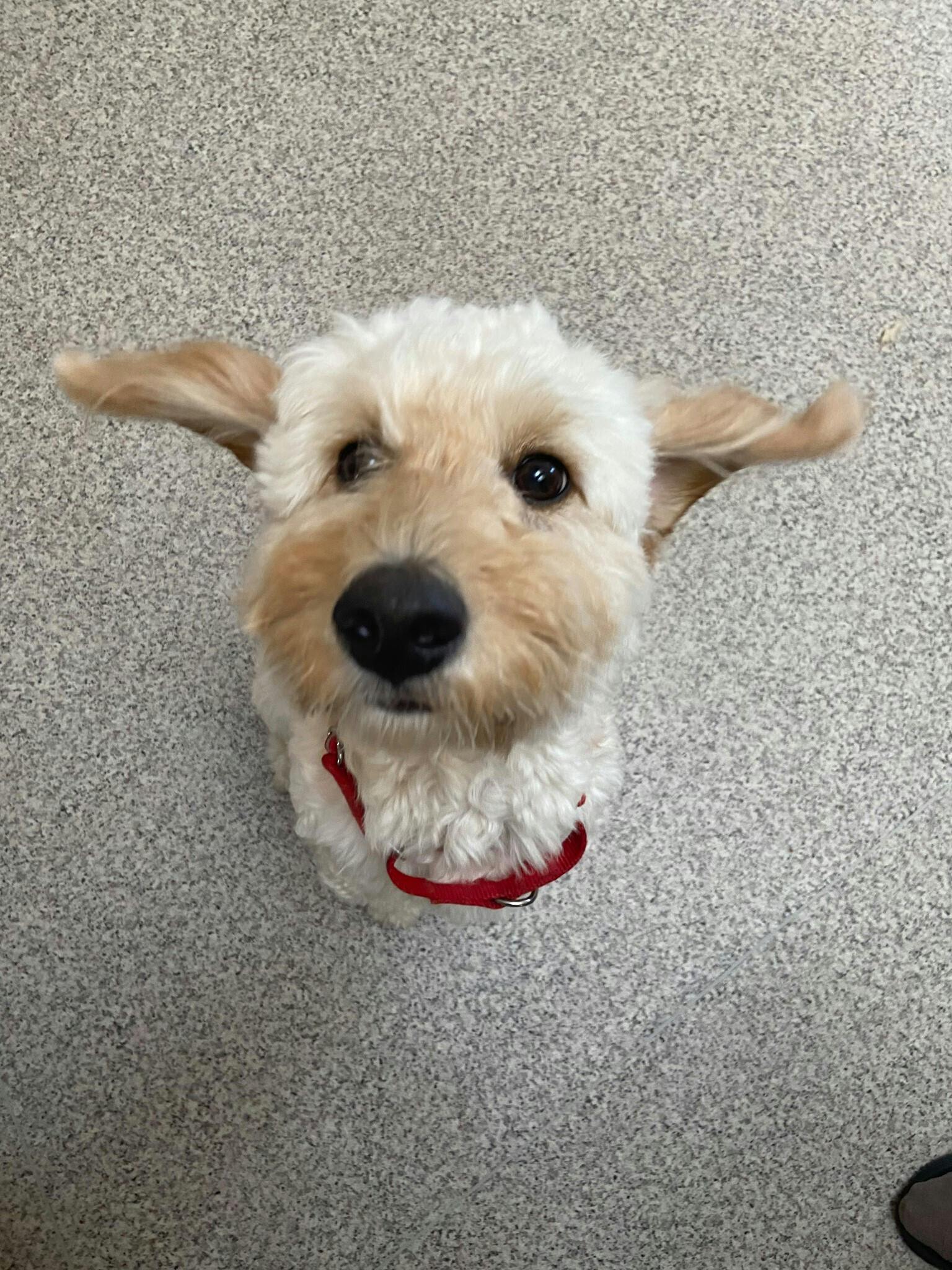 道を歩いていても「まぁかわいい」と人が寄ってこられます。「聴覚障がいのある方のために」と、お世話になっているブリーダーさんからのご紹介で、ビション・フリーゼとゴールデン・ドゥードルとのミックス犬こうちゃんを譲渡いただきました。毛が抜けにくいのも、ありがたい。