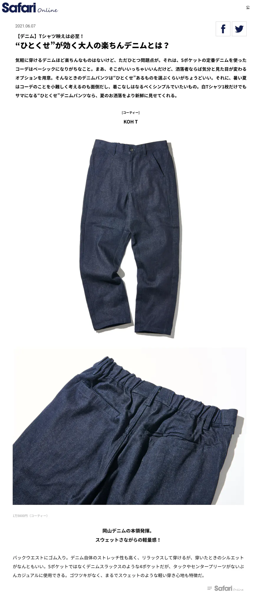 SHIN-KAI DenimのパンツがSafari onlineにて掲載されています!