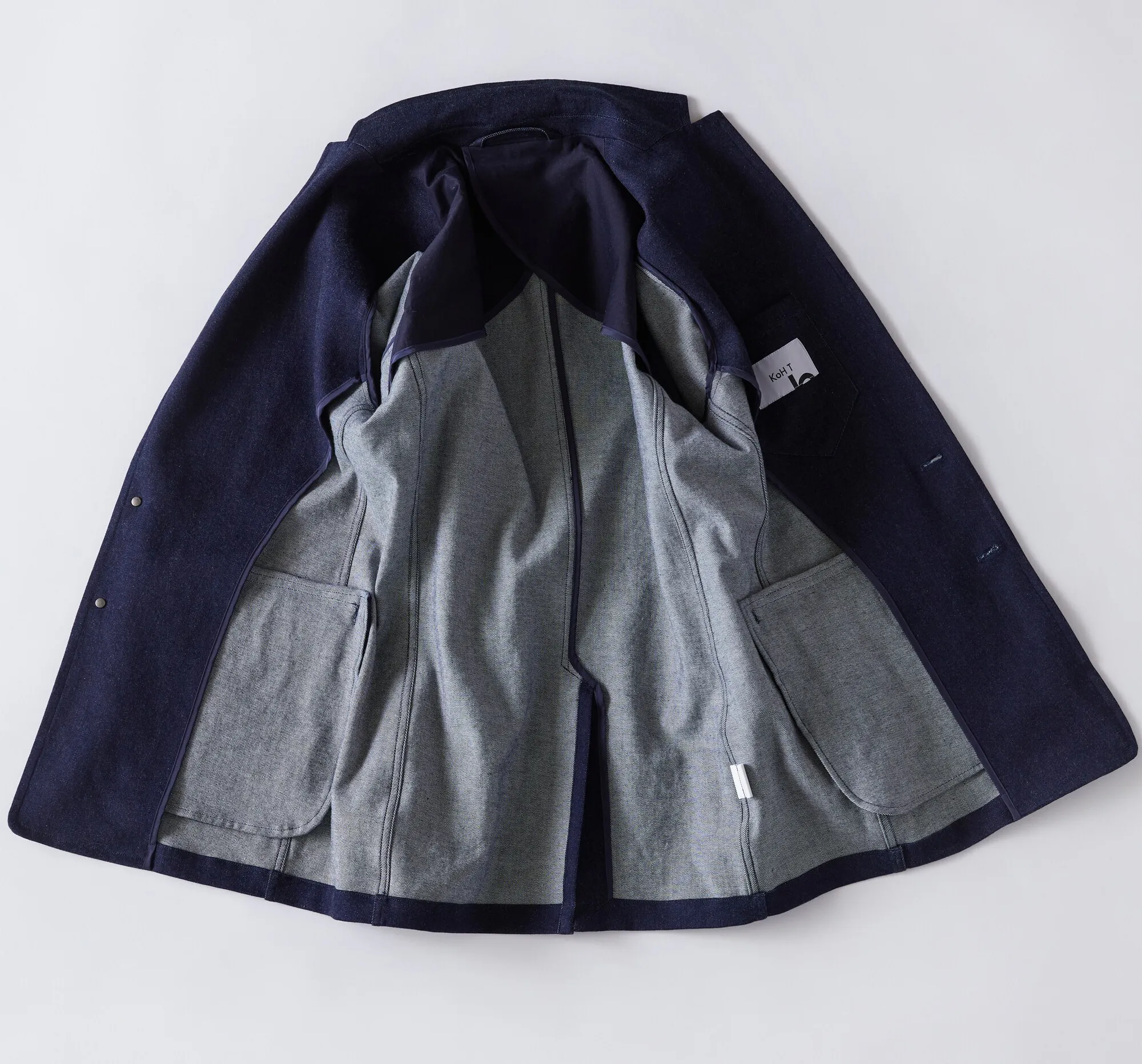SHIN-KAI Denimのジャケットは裏地がついていない1枚仕立てで、パイピングで仕上げられています。