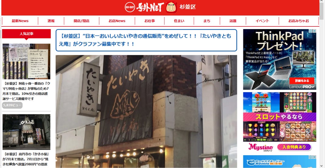 『号外ネット 杉並区版』にてクラウドファンディングの取り組みを記事にしていただきました。「おとりよせたいやき」と「おとりよせ白玉たいやき」を持ち帰って温め、焼き直して食べていただいた上での記事です。いつも足を運んで取材して下さる姿勢に頭が下がります。ありがとうございました。https://suginami.goguynet.jp/2021/07/15/asagaya-tomoean-otoriyose/