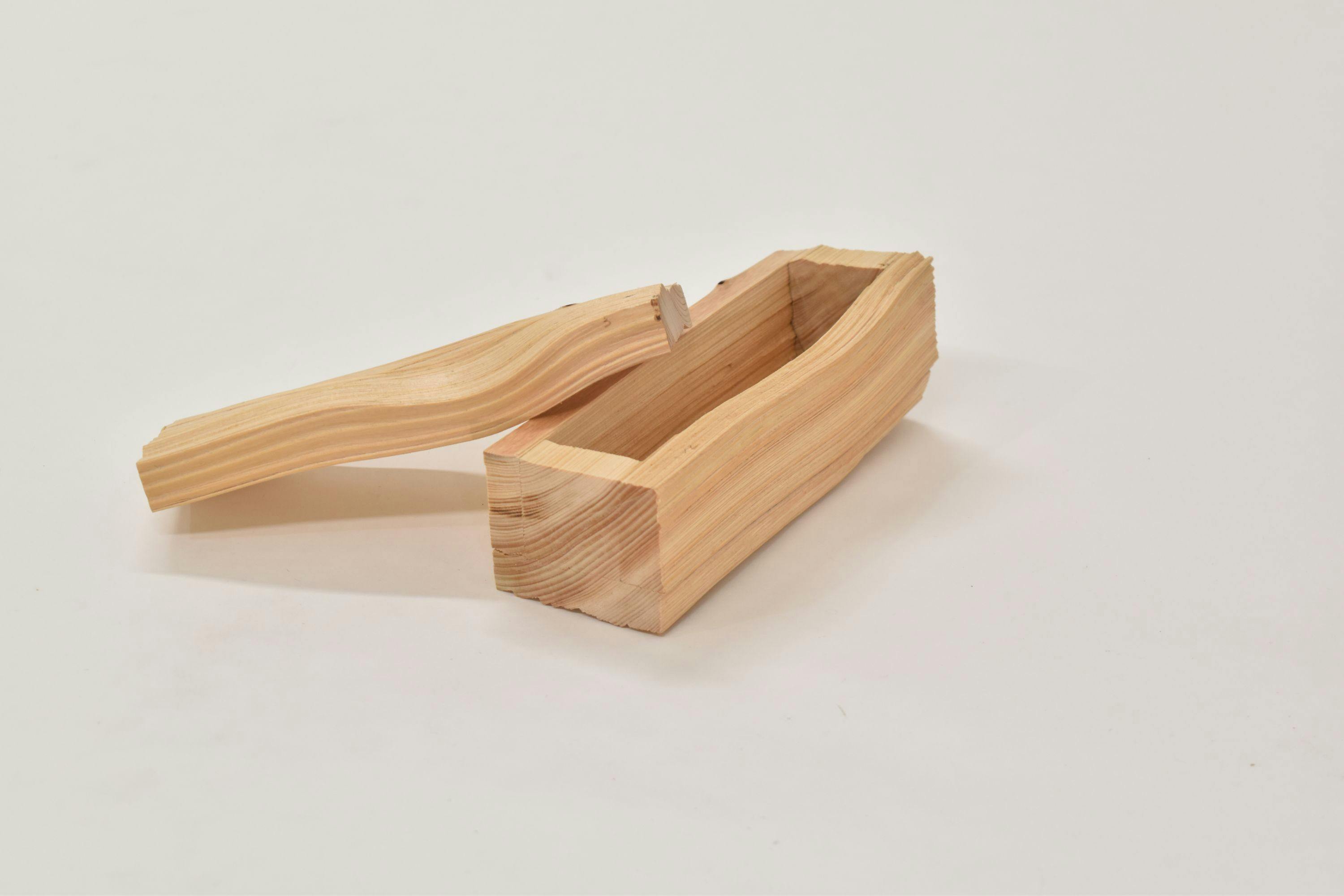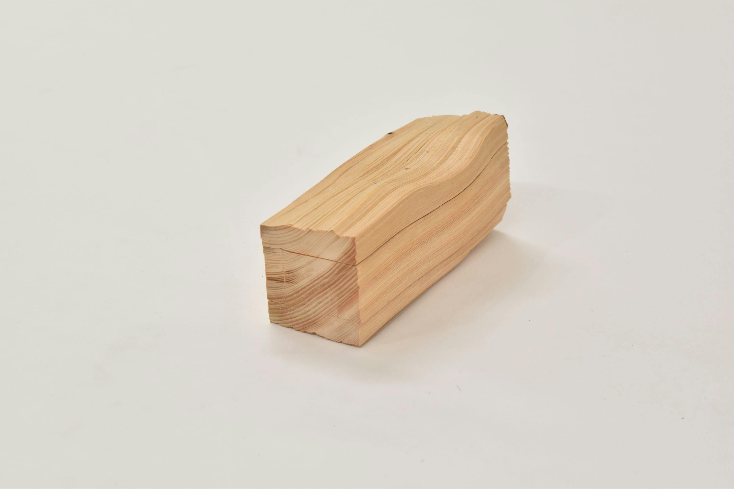 割り加工によってつくる「ヒノキの箱」立体の木目が美しい箱